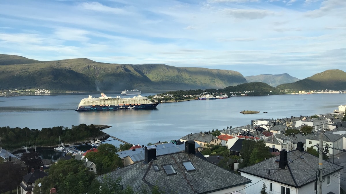 Totally renovated apartment with all amenities, 85 sqm in 1 floor in our old private town house built in 1905. Free Parking on the property. Charging option for car by agreement 5,- Nok/Kw. Walking distance ( 15min) to the famous Ålesund City center with its Jugend style arcitekture and the viewpoint Aksla. A must for all visitors. 10 minutes walk to the seaside where you could take a swim at the beach or go for fishing. Bus stop just outside the house.