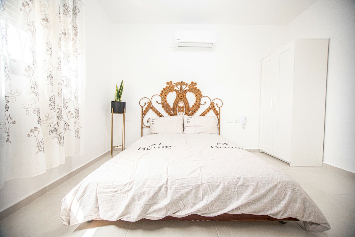 A new self contained unit with separate entrance into your private covered garden in a quiet neigbourhood. . And YES we are the nearest to the Beach just 3 mins in a straight line (no steps at all) We are only 35 minutes from Tel Aviv ,and Haifa .And ceasaria and zichron yaachov just 15 minutes away. Just look for the English flag.