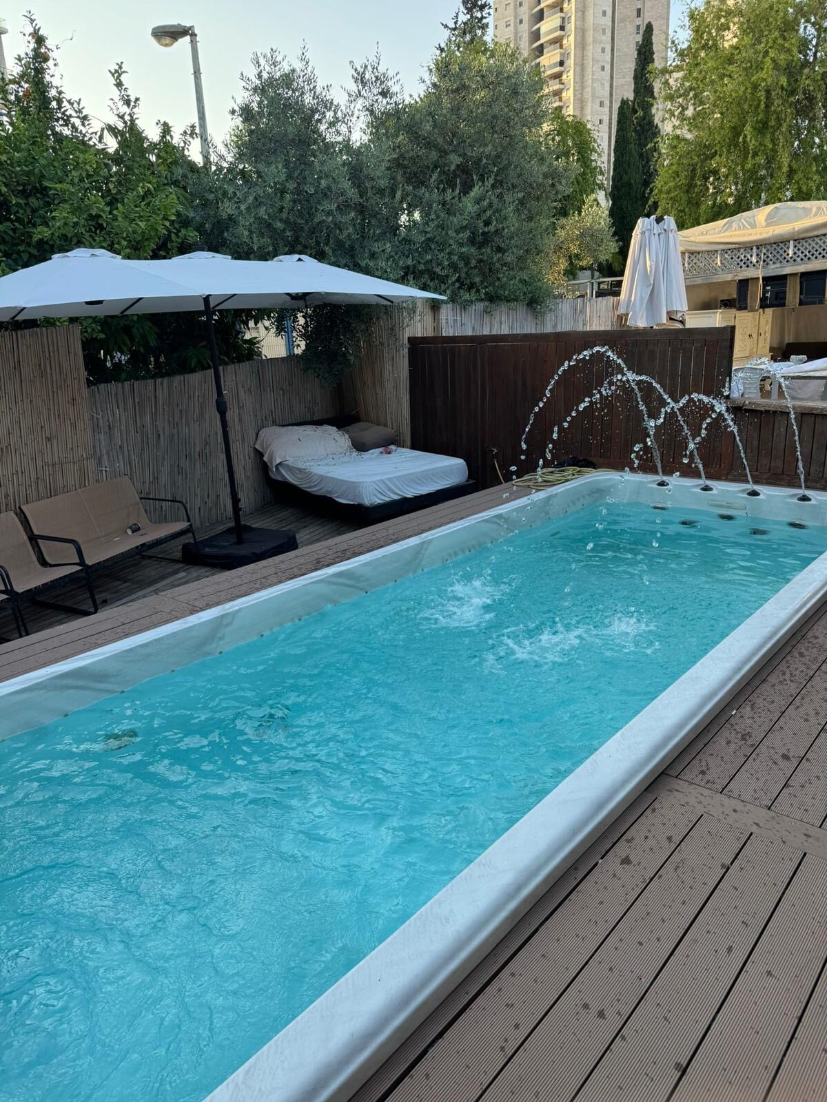 stylish penthouse with gorgeous sunset views! Enjoy a spacious terrace with a swimming pool in the summer (June–October) and a hot tub year-round. Elegant master bedroom with a balcony and bathroom, and a safe room with another bathroom. Located on the 7th floor — bright, airy, and welcoming. Private parking . Just 10 min from Tel Aviv and 20 min to the beach, cafes, and restaurants. In Holon’s best, most central neighborhood — vibrant, lively, and full of charm. — your perfect urban retreat!