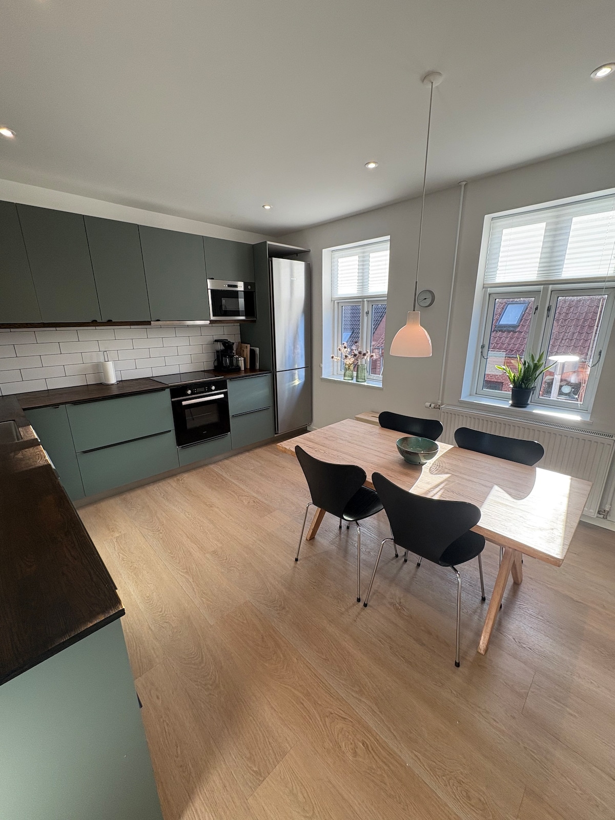 Vi har en dejlig lejlighed i forbindelse med vores gård. Den er på 60 m2 og har køkken-bad, soveværelse, tv-wifi, stue på 1. sal. Lejligheden er velegnet til et par med 1-2 mindre børn. Vi ligger tæt på Vejlby Fed strand Vores vildmarksmad kan benyttes mod et gebyr på 300 kr. eller 40 euro. Badet kan benyttes flere gange til prisen. Der ønskes en lettere rengøring ved afrejse. Hvis gæster ikke selv ønsker at gøre rent, kan de vælge at betale et rengøringsgebyr på 400 kr.