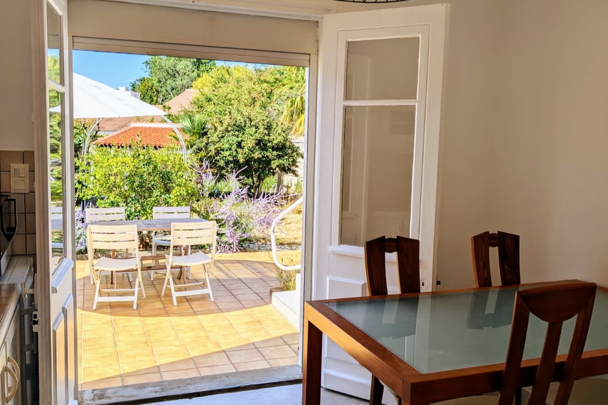 Ce logement familial pour 6 personnes de 80m2 classé 3* meublé de tourisme avec son garage privatif, est idéalement placé. Grande plage, marché, commerces et restaurants accessibles à pieds. 500m d'une grande surface Chambres et salon parquet massif, cuisine lave vaisselle , Nespresso Salle de bain rdc Douche à l'italienne à l'étage 2 toilettes dont un séparé Lave linge Wifi TV 123cm Jardin salon extérieur, plancha Linge de lit et de toilette fournis Lits faits à l'arrivée Kit accueil cuisine