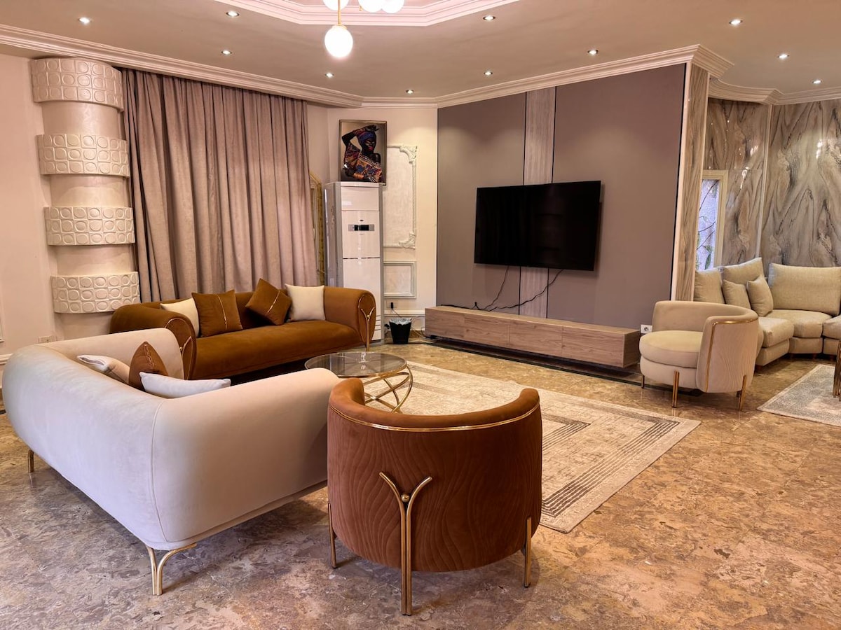 ✨ Luxury Villa Facing the Grand Egyptian Museum & Pyramids ✨ ( 4 floors villa ) this stunning 5-bedroom private villa with a private pool and 1200 m² of spacious indoor living — all set directly in front of the Grand Egyptian Museum and just minutes from the Pyramids. a fully equipped kitchen, fast WiFi, and plenty of outdoor space for relaxing or entertaining. Perfect for families, groups, and anyone seeking comfort with world-class views. A housekeeper is included (optional)