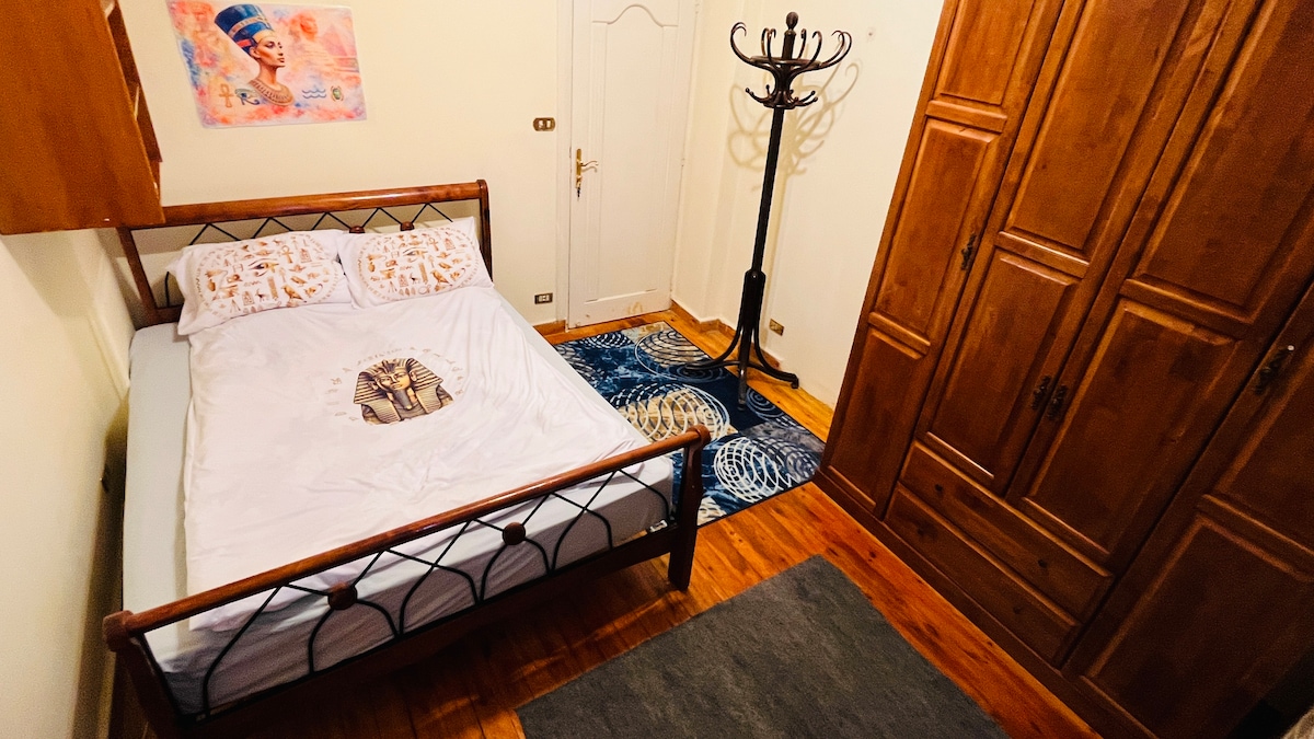 The Khan of the Pyramids, one-of-a-kind retreat where handcrafted design meets ancient wonder. This serene apt is nestled in El Haram and offers a direct view of the Pyramids from your bed or Hot tub Every corner is filled with earthy textures, curated pieces, and natural light — designed for slow living, restful nights, and magical mornings with a view that’s truly unforgettable. Whether you’re a couple, solo traveler, or creative soul seeking inspiration, this Khan is your haven in Giza..