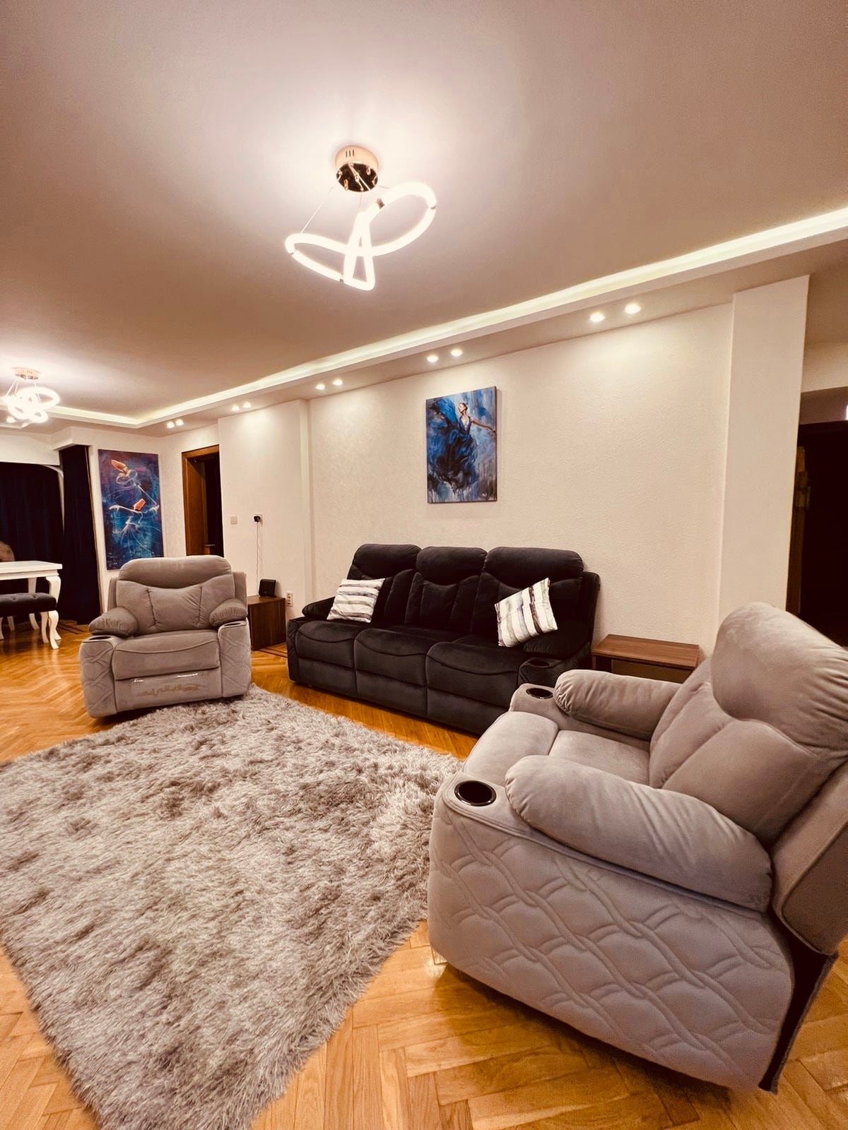 Furniture Recently Upgraded Escape to a stylish, private 3-bedroom villa perfect for families and groups. This sunlit sanctuary features a private garden, and a fully equipped kitchen. Enjoy a 75” Smart TV, Cinema System with smart tv light and playstation with high-speed Wi-Fi, and smart home features. Located just minutes from Dream Park and Arkan Plaza, this home comfortably accommodates your group for a memorable retreat of comfort, privacy, and fun.