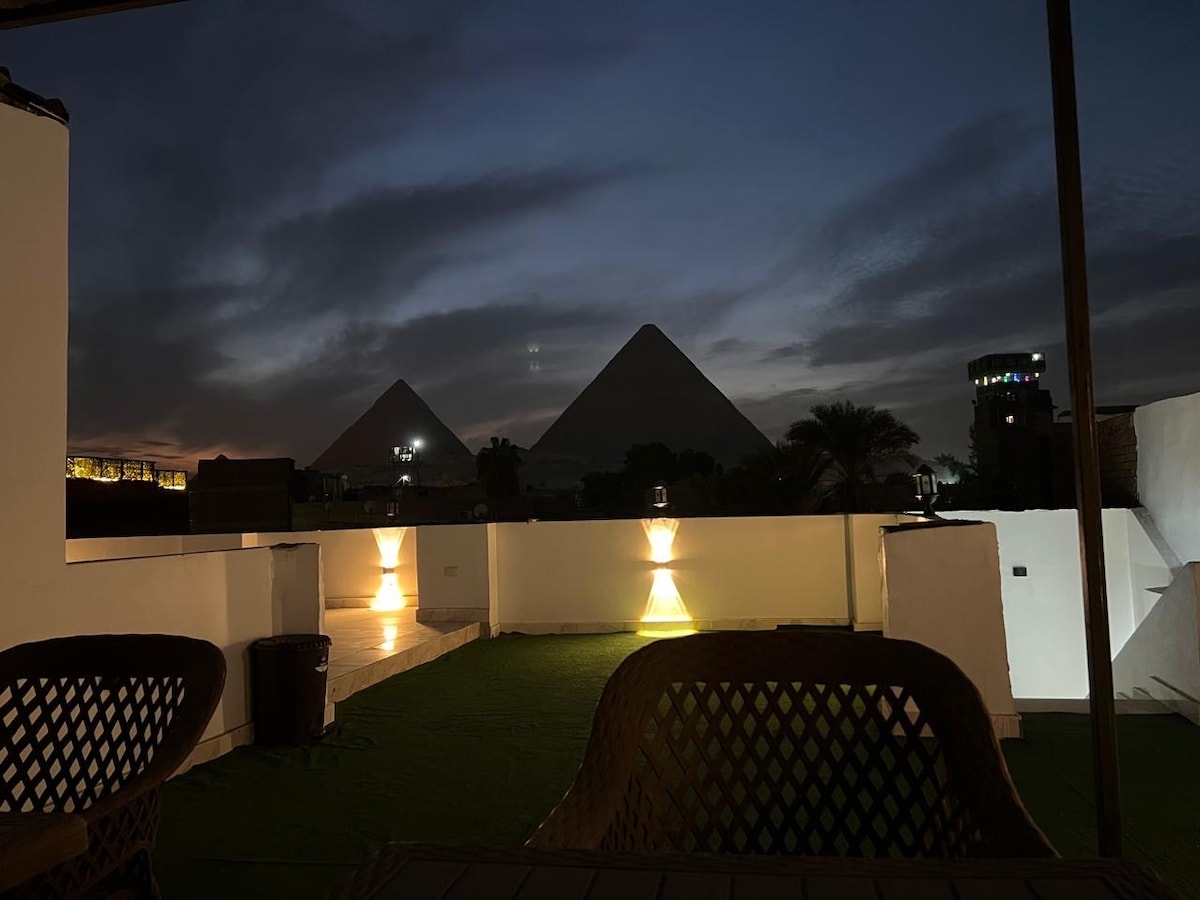 Unmatched Pyramid Views – Enjoy breathtaking sights from your private balcony or our panoramic rooftop. • Private Jacuzzi – Soak in luxury while gazing at the Great Pyramids of Giza. • Elegant Private Bathroom – Featuring a modern shower cabin for your comfort. • Complimentary Coffee & Tea – Start your day with a warm drink and an unforgettable view. • Perfect Blend of Relaxation & History – A once-in-a-lifetime experience! Book now!