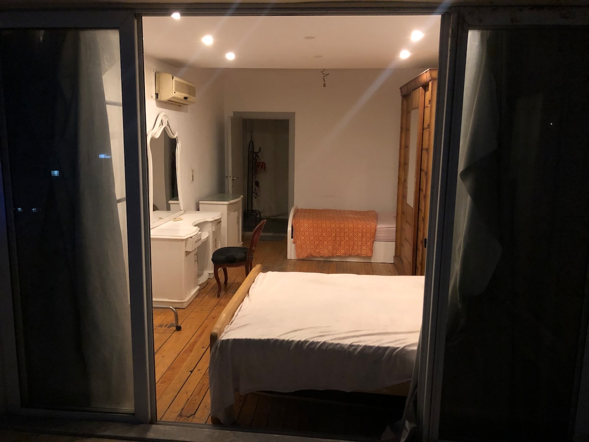 Cozy and fully-furnished flat in Abdeen, downtown, the heart of Cairo. The apartment has a great rooftop, very spacious with amazing view to one of the oldest buildings in Cairo. •NOTE• There’re power outlets compatible with US, UK and EU plugs.