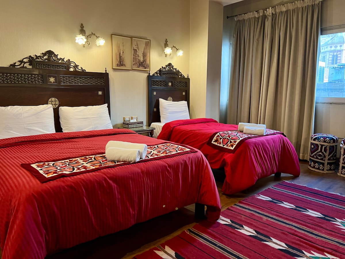 Embrace Arabesque splendor in this 4-bed downtown apartment. Just steps from Khan el Khalili, Tahrir Square, Moez Street, Abdeen Palace and 15 mins drive to The Great Pyramids, explore Cairo's rich history and vibrant culture. With stores and beloved cafes at your doorstep, indulge in the city's charm. Housed in a historic building once inhabited by movie legends, enjoy 24/7 security and attentive building managers, ensuring peace of mind in the heart of the bustling metropolis.