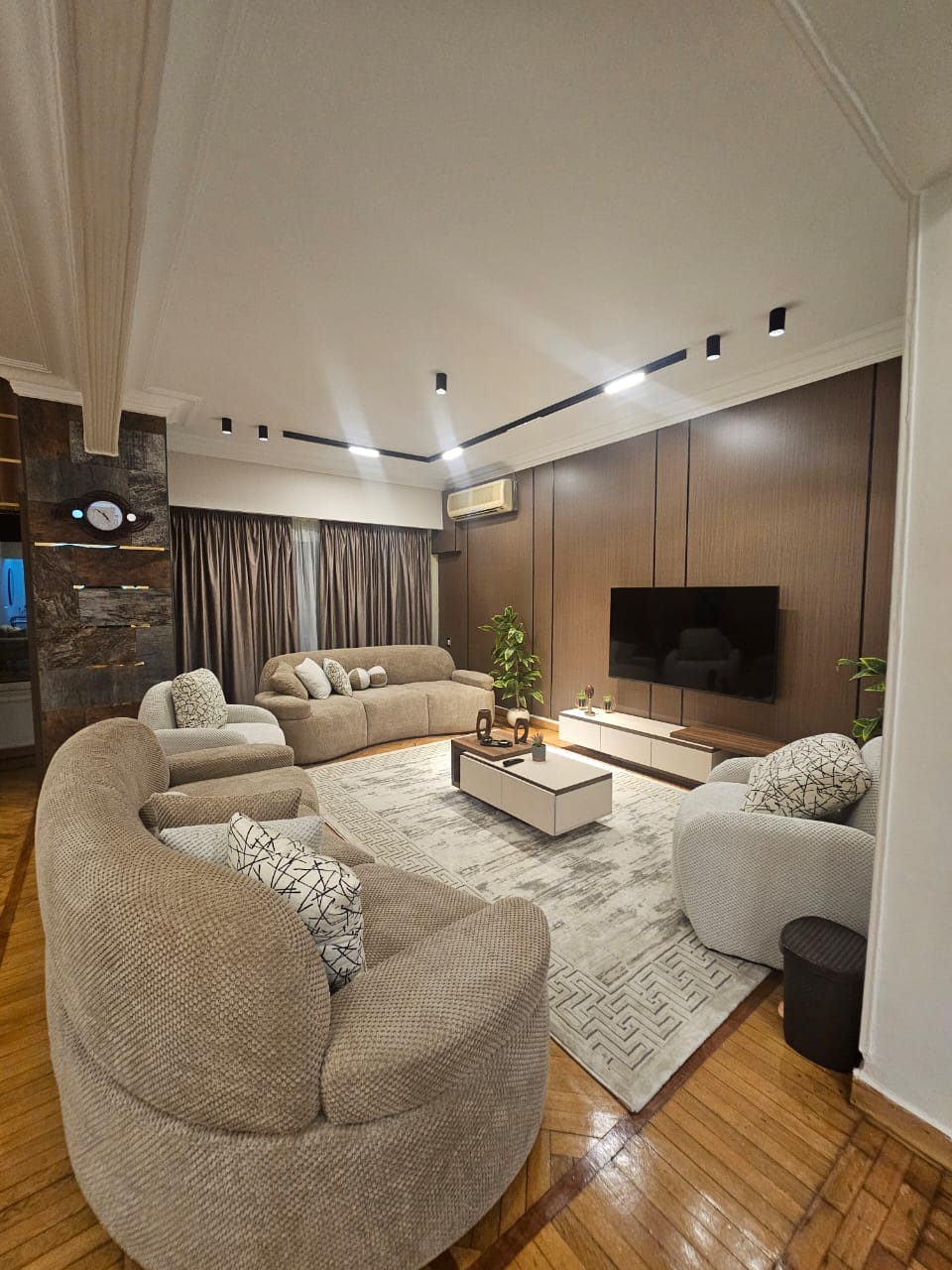A stunning 3-bedroom luxury apartment with a private garden and a sleek modern design. Equipped with air conditioning units in all rooms for ultimate comfort, the property also features 2 elegant bathrooms. Located in the prime B6 area of Madinaty, it offers an exceptional lifestyle combining style, convenience, and a peaceful setting. Perfect for those seeking a refined and comfortable living experience in a premium location.