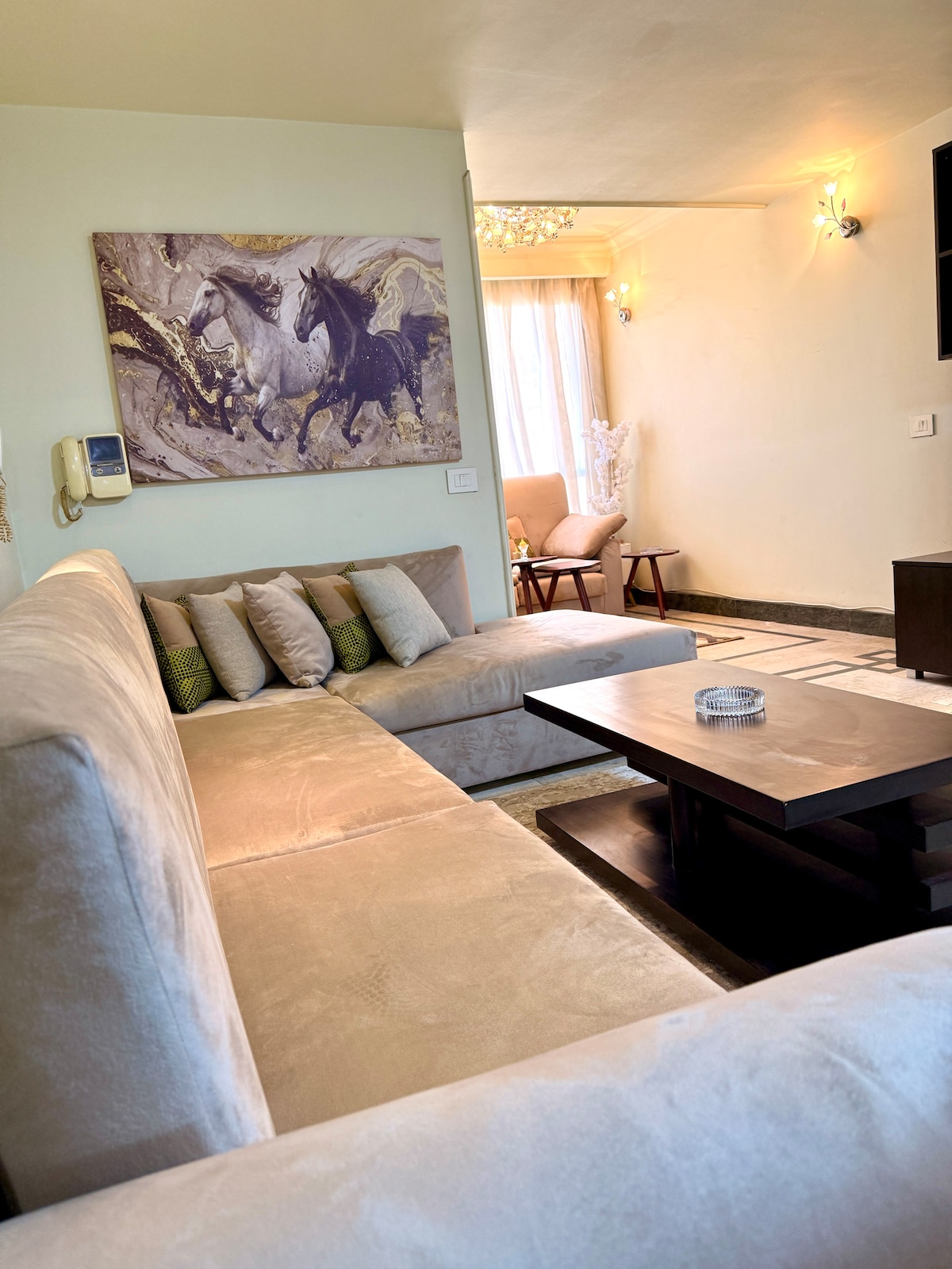Welcome to Your Luxurious Retreat! Discover our beautifully furnished three-bedroom apartment in One Kattameya Compound. Enjoy the master suite with a private bathroom and two spacious queen bedrooms. The fully equipped kitchen and inviting living room offer the perfect setting for relaxation. Just a short walk to a convenience store and coffee shop, and conveniently located near the Ring Road for easy access to all of Cairo. Book now for comfort and elegance in our stunning city!
