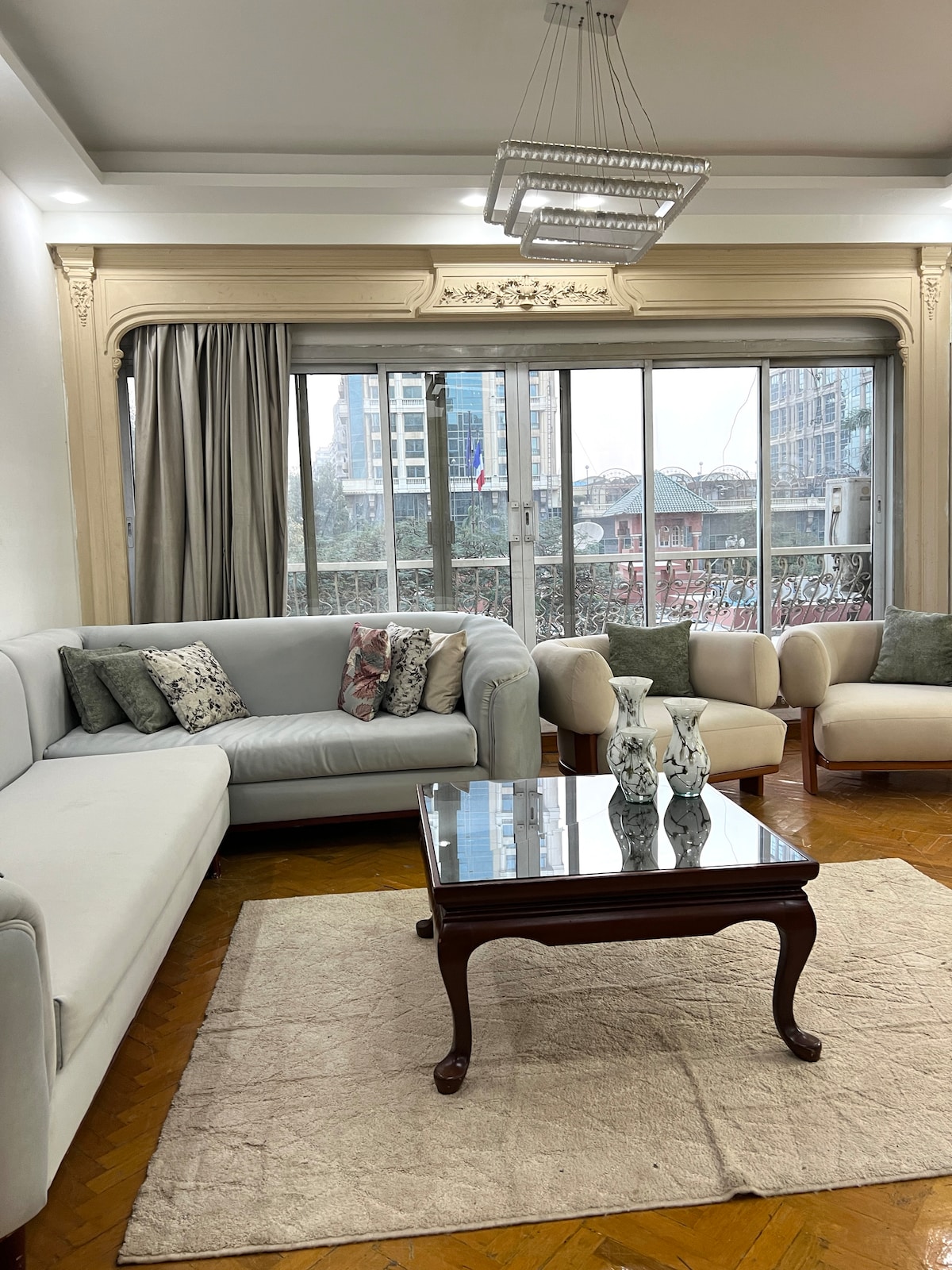 Two minutes walk to the Nile and right in the middle of Zamalek Island, the most famous and most central neighborhood in Cairo, known for its tree-lined streets, charming cafes, and cultural landmarks. Everything you will ever need is just a walking distance from the apartment.. groceries, hairdressers, cafés, bars, fruit shops, plant shops, bookshops, etc are all steps away.