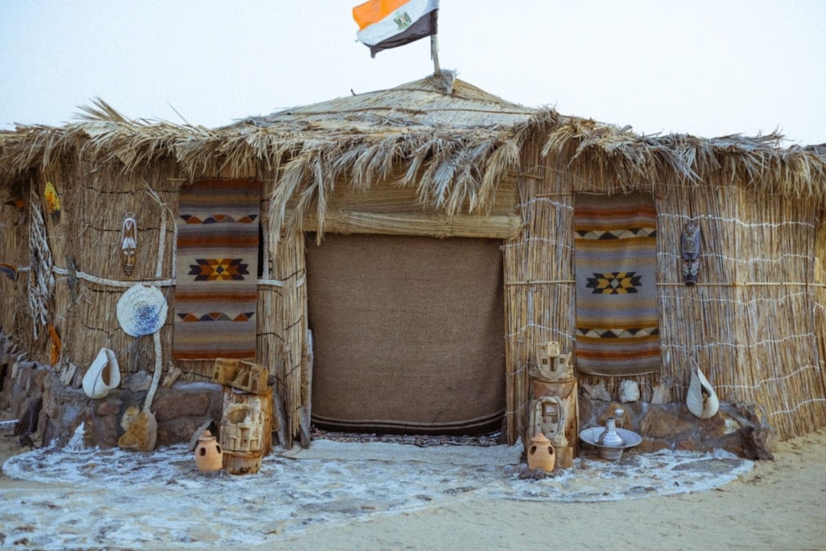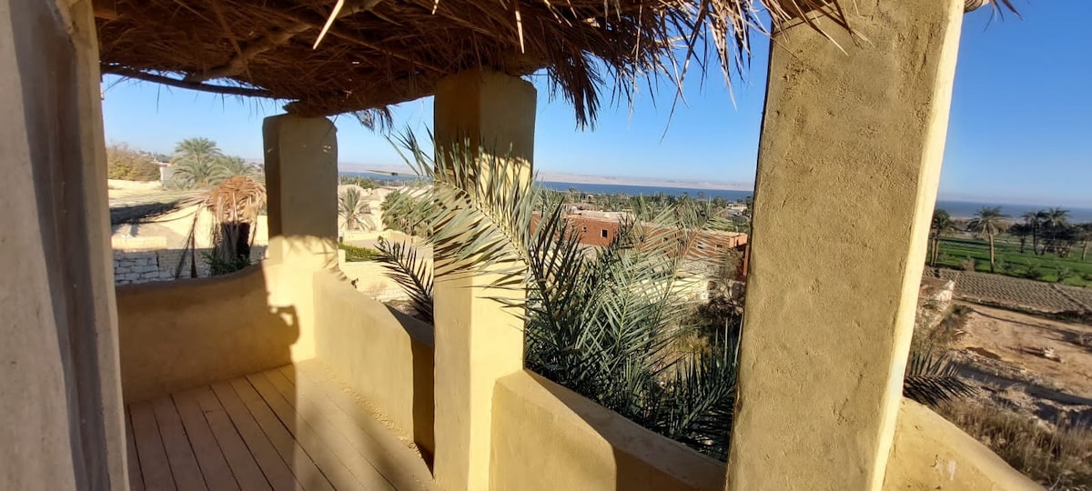 Overlooking Qaroun natural lake the biggest lake in Fayoum oasis, 120 km southwest of Cairo, Egypt. enjoy the green fields, blue water of lake Qaroun and the great west desert. Experience staying in a mud break house. and feel how it is peaceful for your soul.