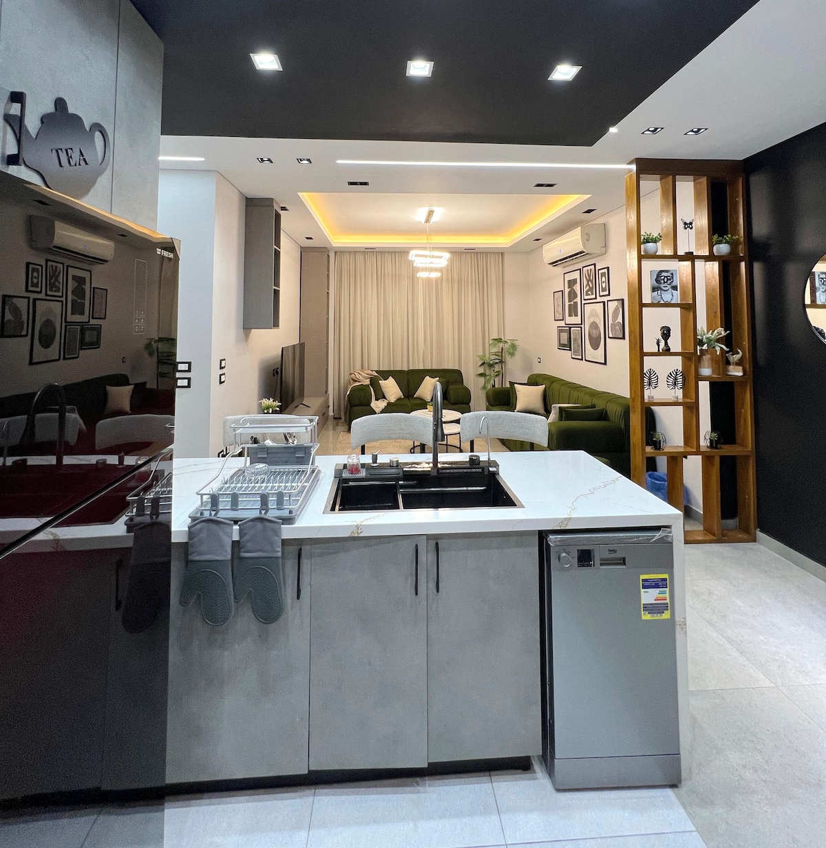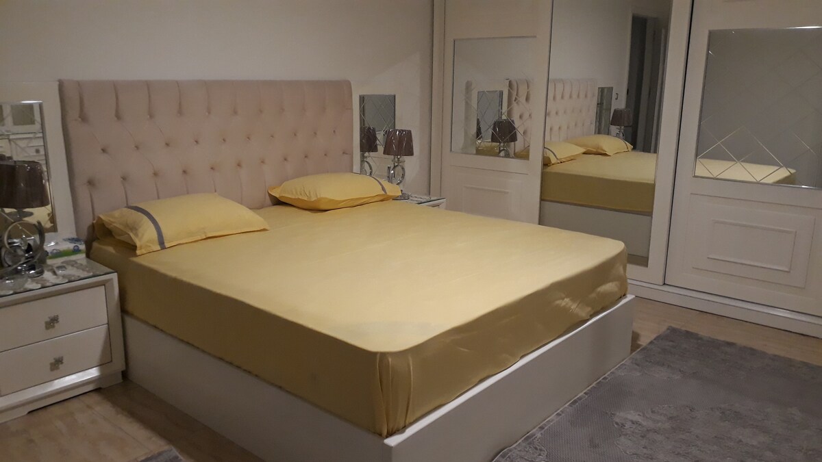 This spacious apartment is fully furnished and equipped with everything you need for a comfortable stay. Relax and watch your favorite movies and TV shows on the sound system with access to Netflix, beIN Sports, Shahid, Watch it, and Starzplay. Located in a central location, close to all the major attractions. Just a short walk for bus station , the shops, and the restaurants. Whether you're traveling for business or pleasure, this modern, stylish apartment is the perfect place to stay.
