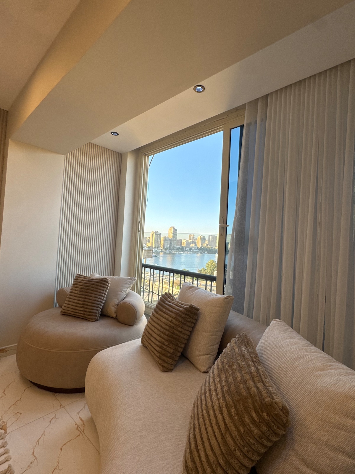 Have fun with the whole family and your lovely friends(Guests ) at this stylish place. Amazing Nile view luxury 3 Master bedrooms Which you can enjoy the sunset view & pyramids. Enjoy a stylish experience at this centrally-located place in new towers , you can enjoy along with your lovely guests feeling the completely comfortable inside the stylish house # 10 minutes from downtown ( Cairo museum and Burj of Cairo ) # 12 minutes from Al Mohandessin # 20 Minutes from pyramids