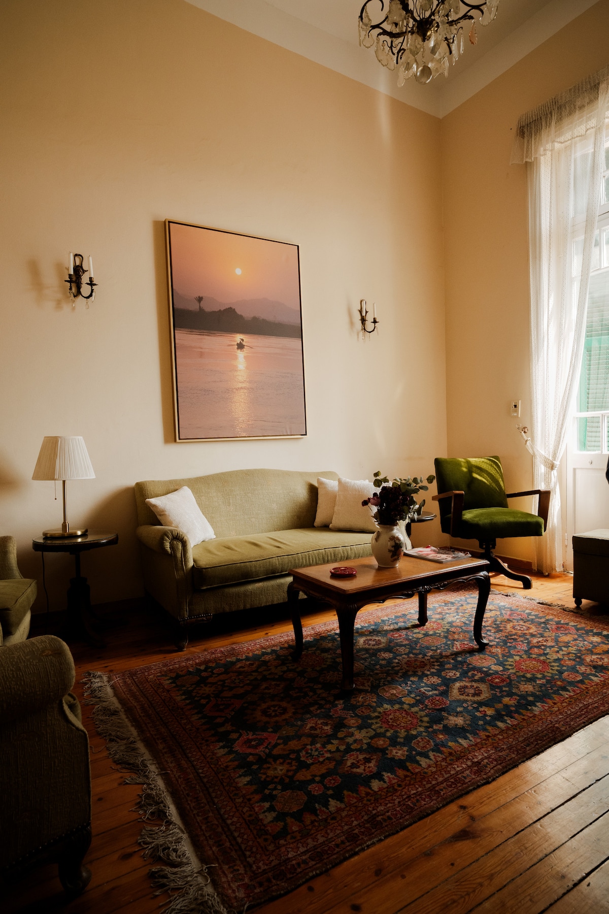 Located in the heart of Cairo and over looking the magical Abdeen palace, the Apartment is 120+ Years old if you are a fan of old buildings and high ceiling with a touch of Royalty, that's the place to be. The apartment is located on the 3rd floor and there is no lift the Apartment is walking distance to all the main attractions in Downtown its 7 mins walk to the Egyptian museum and there is a Metro station nearby its a 2 bedroom apartment and suitable for families!