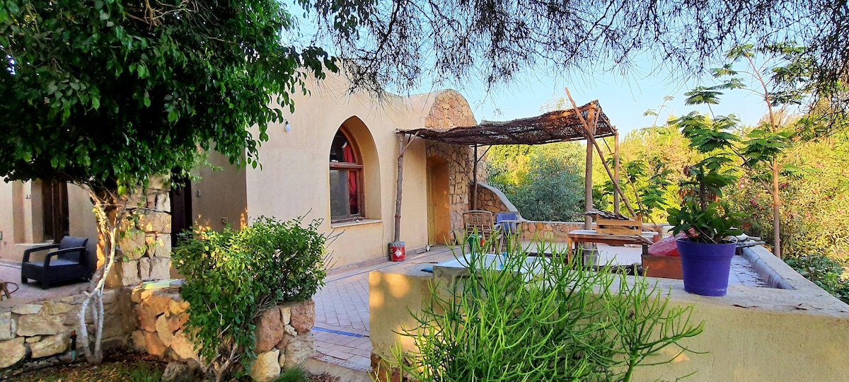 Not far from down town Cairo, Near Abu Sir pyramids inside a horse breeding farm. Single level cozy house surrounded by mango trees and a garden 600m square. The guest house is a large studio with living area, 2 sofa beds, a dining table, kitchenette and a bathroom. A large pergola with a ceiling fan and light is in the garden to enjoy an outdoor stay. Horse back riding can be arranged for extra fees, Friendly dogs are in the garden however can be locked.