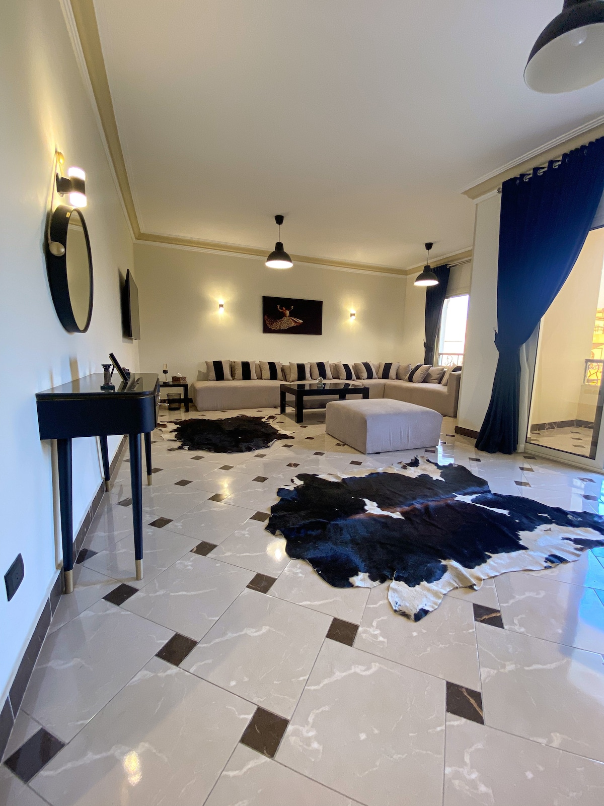 Enjoy staying in the beautifully decorated, spacious & luxurious 240m apartment in the safest area in Egypt 🏡 The apartment is located in a strategic yet very quiet area in New Cairo. Location 📍 > 25 min from Cairo Airport & downtown > 10 min from Cairo Festival City Mall & hospitals > 7 min from the Egyptian International Exhibition Center, Al Manara Conference center & 5A Waterway mall > Only 5 min walking to pharmacy, supermarkets, restaurants & coffeeshops!