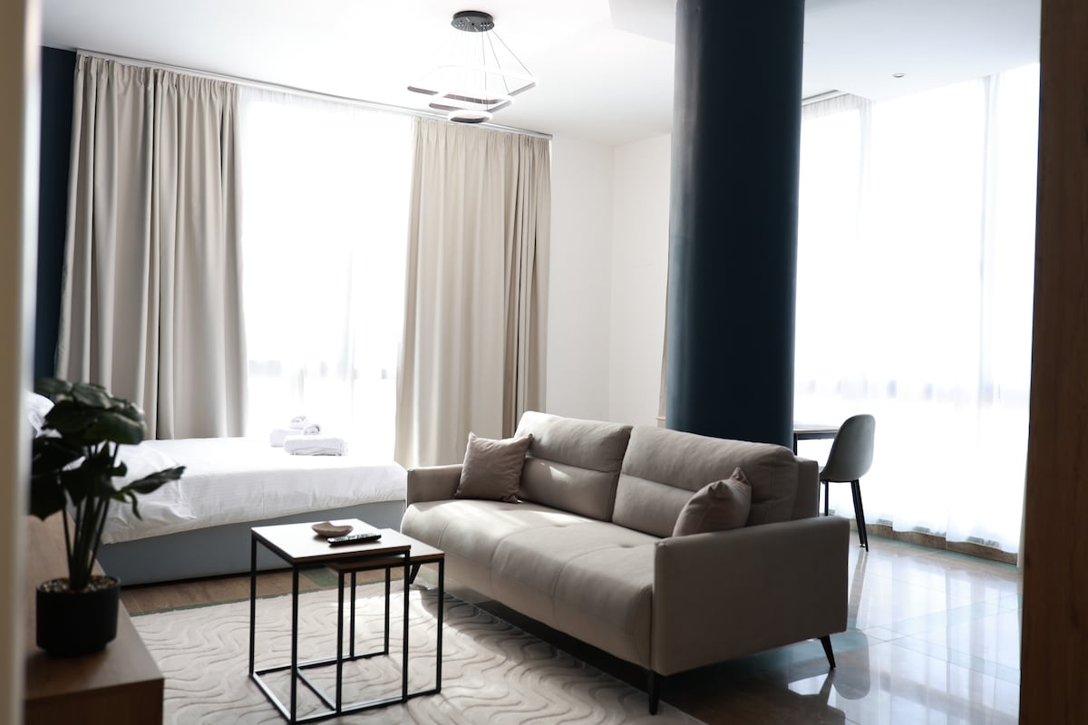Penthouse Durres View is waiting for you! A spacious, sunlight penthouse, close to sandy beaches and unforgettable sunsets! Enjoy the sea and the city views from the balcony or relax in the hot tub with view of night lights overlooking all of Durres City. Durres is also known for its ancient Roman amphitheater dating back to the 2nd century AD and is one of the largest amphitheaters in the Balkans with a capacity of around 20,000 spectators. A magical and relaxing stay could be waiting for you!
