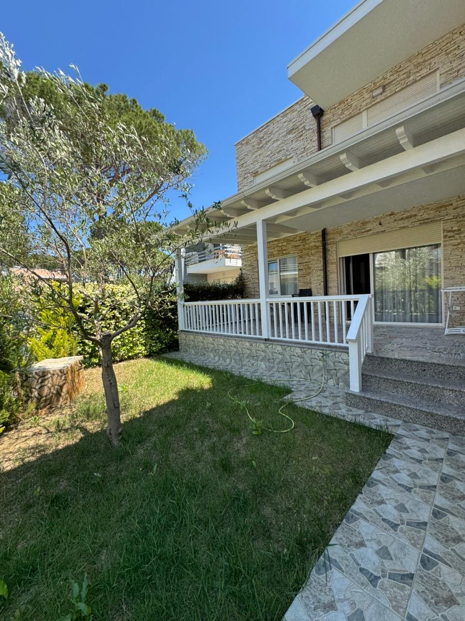 Just steps from the sandy and wide Adriatic beach, this charming two-story villa offers comfort and tranquility. With three bedrooms—including one with a sunset sea-view balcony—it’s ideal for families. A spacious patio and lush garden with pine trees and Mediterranean plants provide the perfect space for outdoor living, family gatherings, and children’s play.