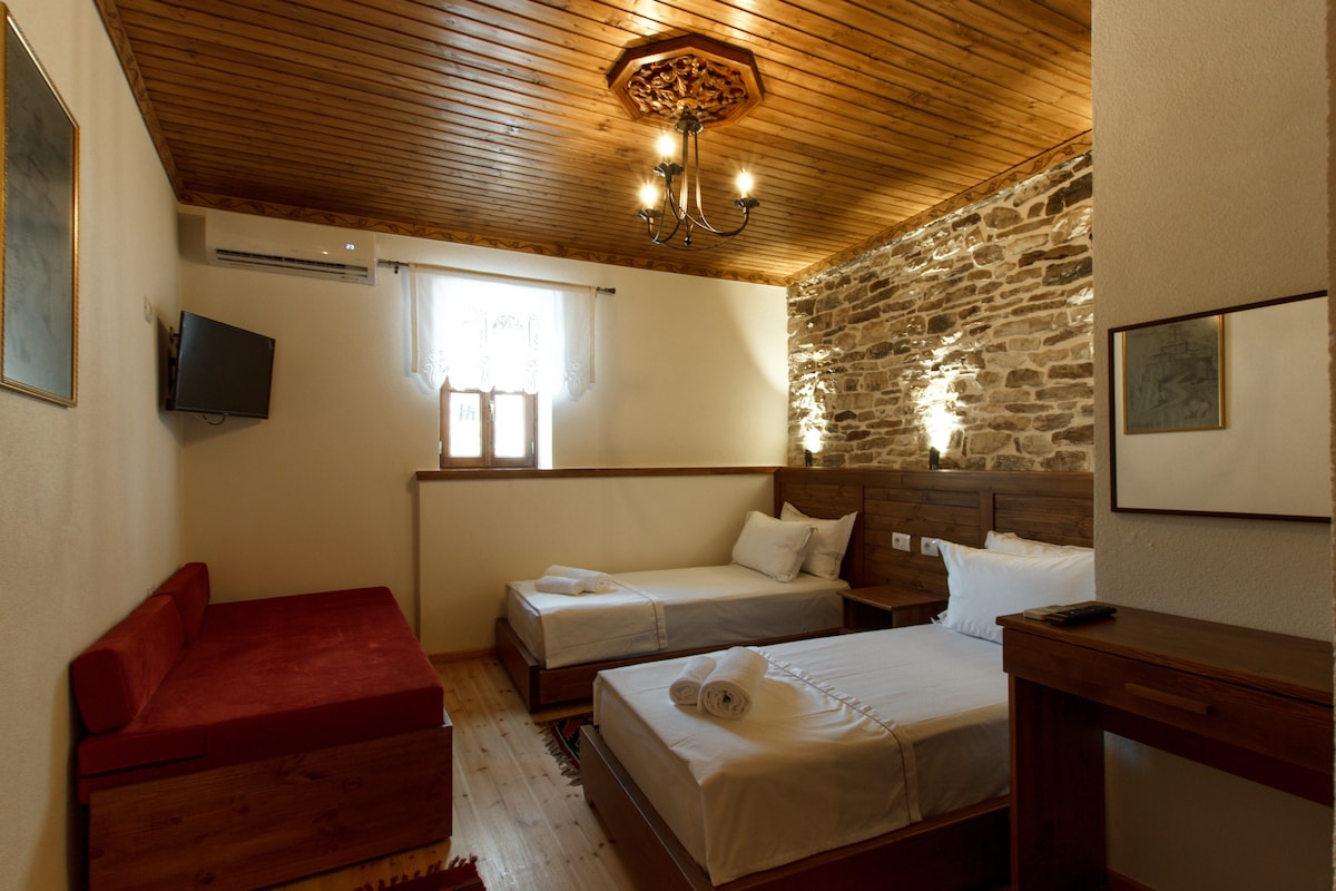 4 rooms hotel is located 100 metres from the centre of Old Bazaar and in front of famous Obelisk monument. There are many characteristic shops, supermarket and restaurant close to the hotel . The Gjirokaster Castle is 500 metres away and you can enjoy its wonderful view . All air - conditioned rooms offer traditional furniture , TV , a bathroom with a shower , hairdryer and of course free Wi - Fi. The bus station is 40 metres away from the hotel .
