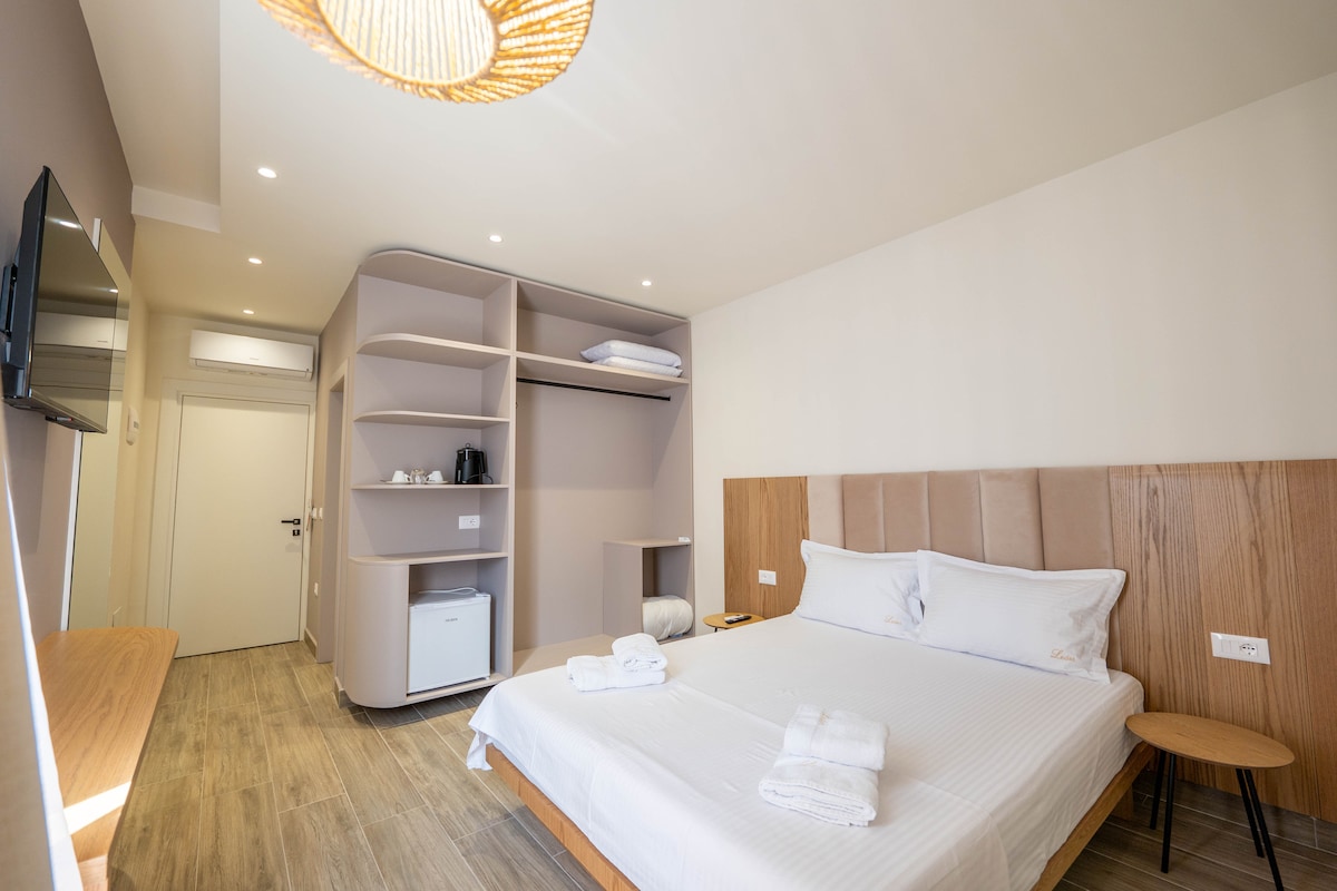 Beachfront Room with Side Seaview Located just a few steps from Sarandë’s best beaches, this charming beachfront room offers a serene escape with a beautiful side seaview of the Ionian Sea. Enjoy the calming breeze from your private balcony, unwind in comfort with modern amenities, and take advantage of being just moments away from the city’s vibrant coast. Perfect for those looking to relax by the sea while exploring the heart of Sarandë.