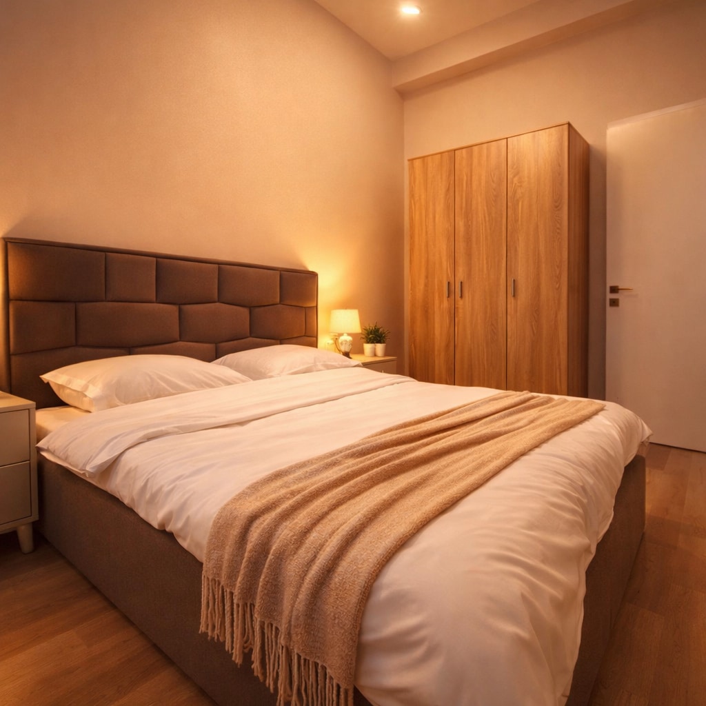 This beautifully designed apartment in the heart of Tirana is just a 7-minute walk from Skanderbeg Square. Located on the third floor with an elevator, it offers an open-plan space with a fully equipped kitchen, dishwasher, stylish dining area, and a spacious living room with a smart TV and AC. The bedroom features a king-size bed and a modern bathroom. Enjoy high-speed WiFi at 100 Mbps. We also offer an airport pick-up and drop-off service for just 20€, making your stay even more convenient.