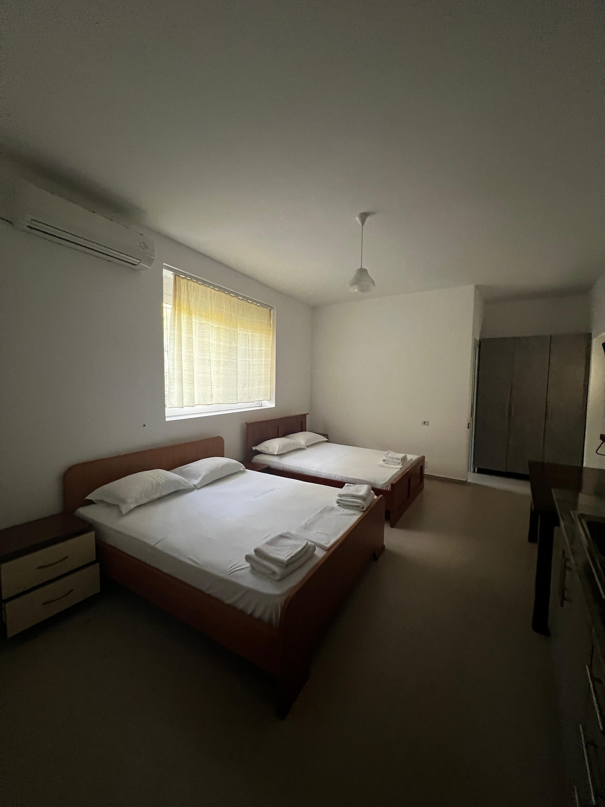 A lovely, newly renovated apartment with a capacity up to 3 people located near the portside of the beautiful Saranda. The apartment provides easy access to the city center- a 5 minute walk, a distance of 20m from some of the city's well-known beaches and also nearby ATMs, tourist information offices and public transport to some must-be destinations while visiting Saranda, such as Ksamil or the Archeological Park of Butrint.