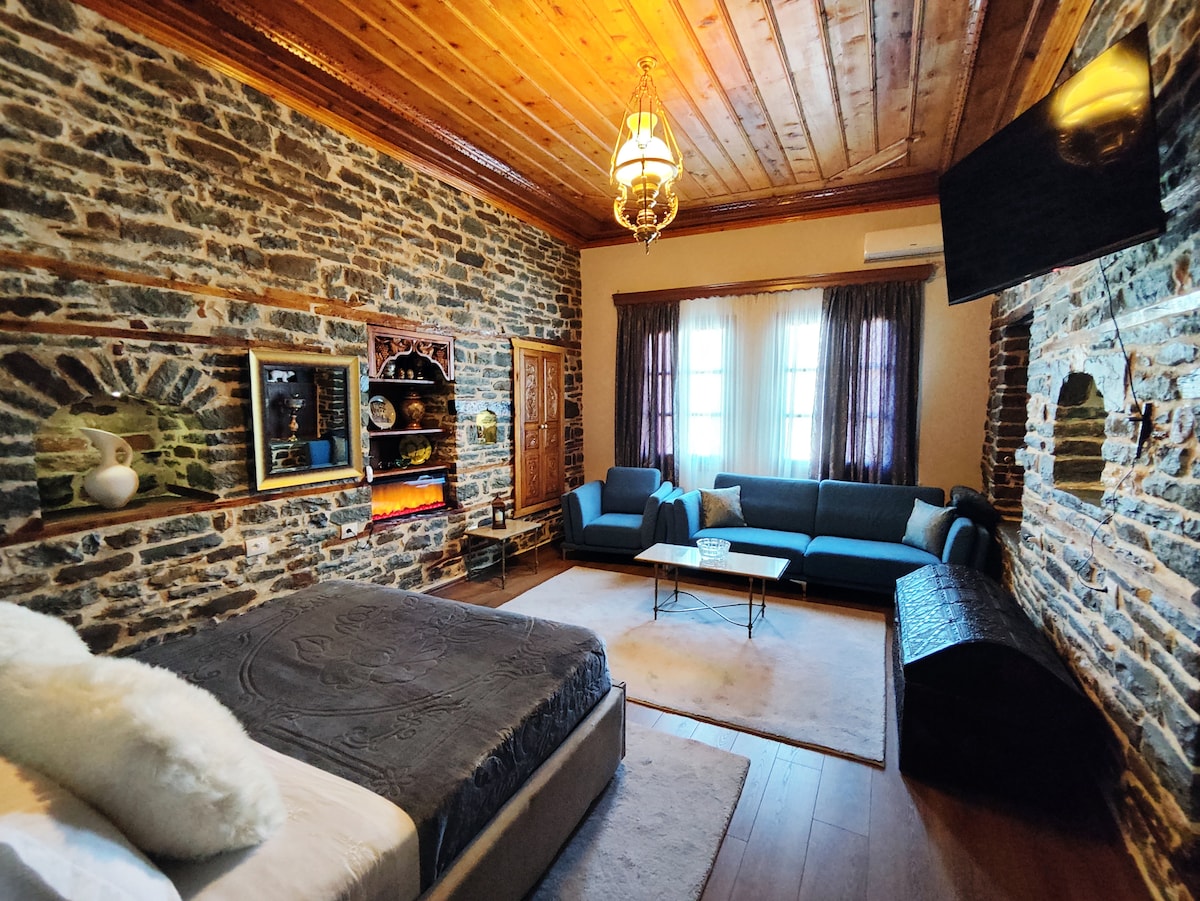 Experience the traditions of Gjirokaster in this inviting apartment. Relax in a comfortable bedroom adorned with local textiles, unwind in the inviting living area, and prepare meals in the well-equipped kitchen. Enjoy your coffee as you take in the panoramic view of the Castle. Whether for romance or adventure, our apartment promises comfort and authenticity for an unforgettable stay. Book now and experience Gjirokaster's magic firsthand!