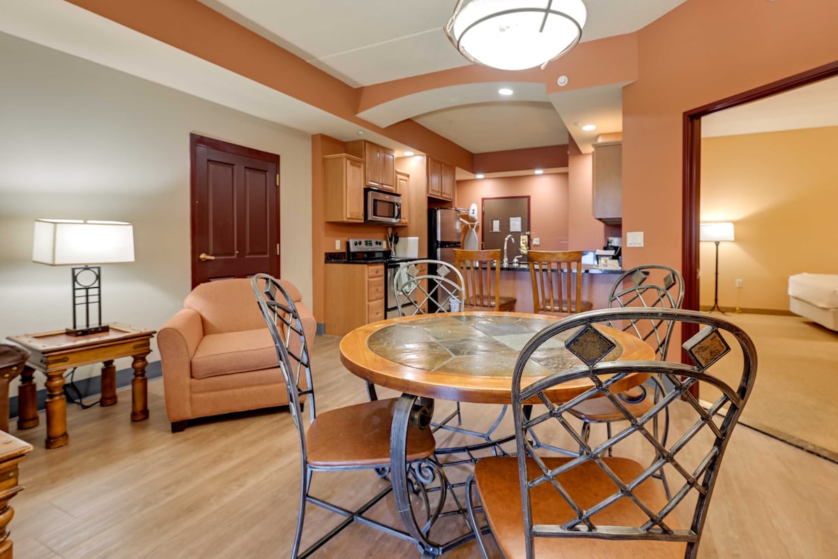 Wyndham Glacier Canyon – Spacious Resort Getaway in Wisconsin Dells Escape to the Wyndham Glacier Canyon Resort, perfectly located in the heart of Wisconsin Dells, the “Waterpark Capital of the World.” This spacious suite combines the comfort of home with resort-style luxury, giving your family or group everything needed for an unforgettable vacation. Whether you’re here for thrilling waterparks, natural beauty, or a relaxing retreat, Wyndham Glacier Canyon puts you at the center of it all.
