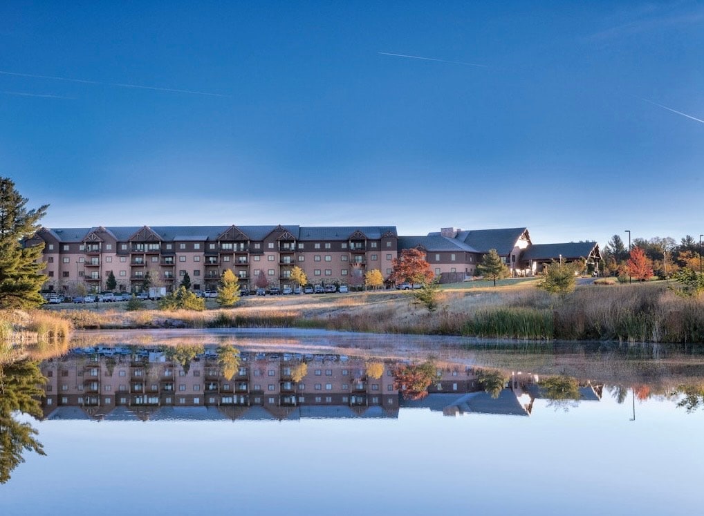 Nestled in Wisconsin's scenic wilderness, Club Wyndham Glacier Canyon blends rustic charm with modern flair, featuring timber furnishings and stacked stone accents for a cozy, lodge-inspired vibe. Just steps away, Wilderness Resort beckons with nine thrilling waterparks, four arcades, and a host of amenities. Discover local adventures like wineries, golf courses, casinos, wildlife parks, hiking trails, horseback riding, carriage tours, zip lining, go-karts, and magic shows.