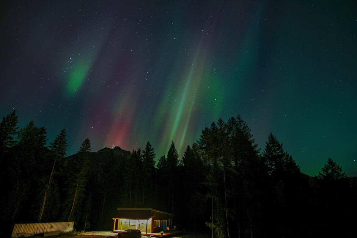 Modern tiny home, surrounded by mountains in the Canadian Rockies. Soak in the hot tub, relax in the treehouse sauna or on the spacious deck. ️ Perfectly located for adventure: 6 minutes to downtown Golden 20 minutes to Kicking Horse Easy access to Yoho, Glacier, Banff, and Bugaboo Parks Queen bed + pull-out couch Modern kitchen with everything you need to cook Full bathroom with shower High-speed WiFi Shared hot tub and treehouse sauna Private deck with BBQ