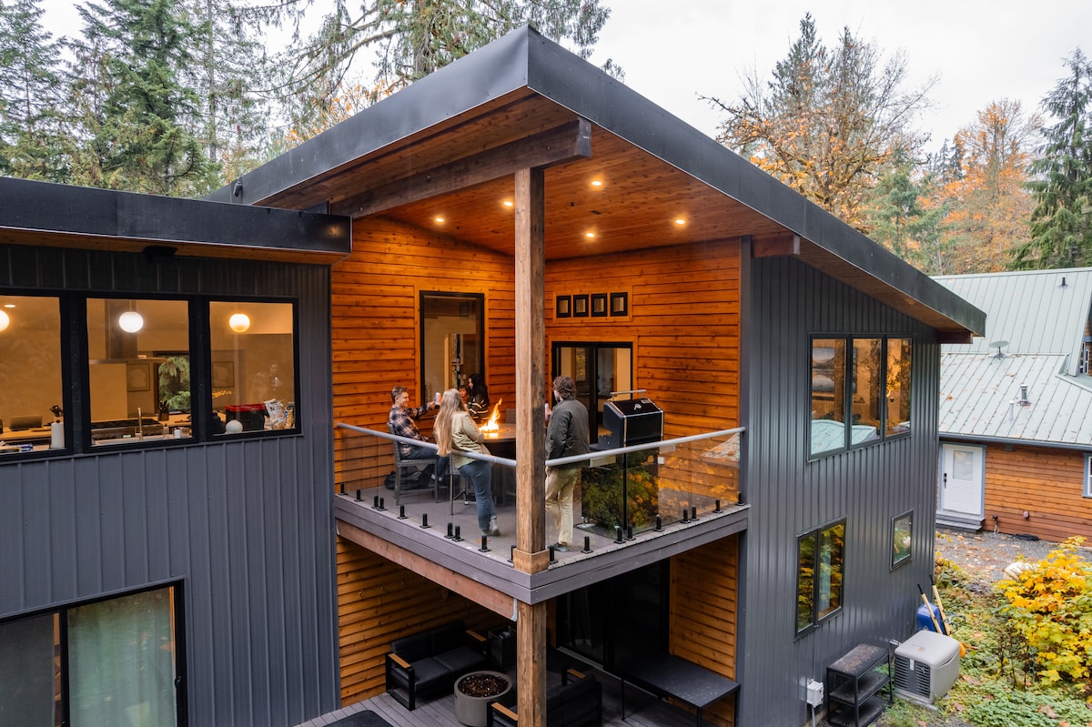 Modern luxury cabin 30 mins to Mt. Baker Ski Area. Designed for families & small groups with 3 king suites, spa-style baths, and a stunning fireplace. Unwind in the hot tub or cold plunge after skiing or hiking. Chef’s kitchen, fast Wi-Fi, workspace, EV charger, and sunny forest deck. Private, peaceful, and easy—perfect for mountain getaways year-round.