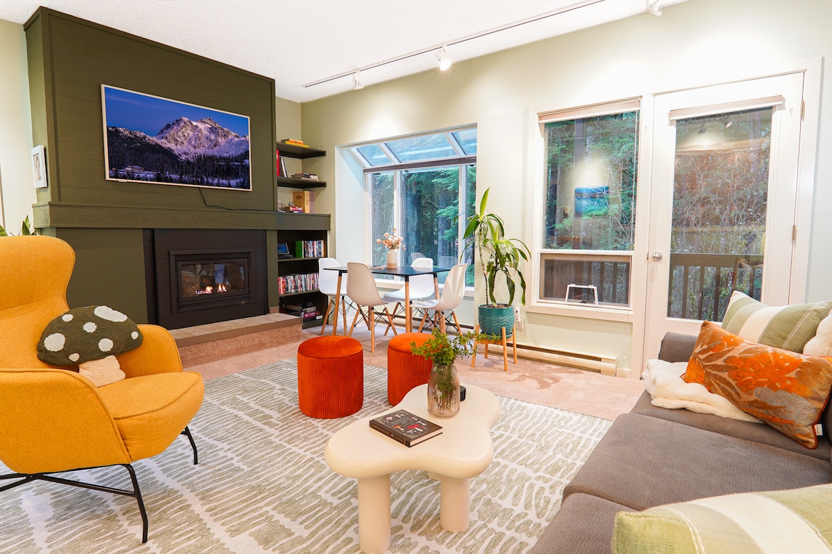 Contemporary design, fresh, and clean--remodeled vacation rental condominium Glacier, Washington, at Snowater—a casual resort complex on the Nooksack River. Tucked away on 20 beautiful, wooded acres and just 18 miles to Mt. Baker Ski Area, Snowater is close to beautiful scenery, hiking and snow sports and has abundant recreational facilities onsite (courts, trails and more).