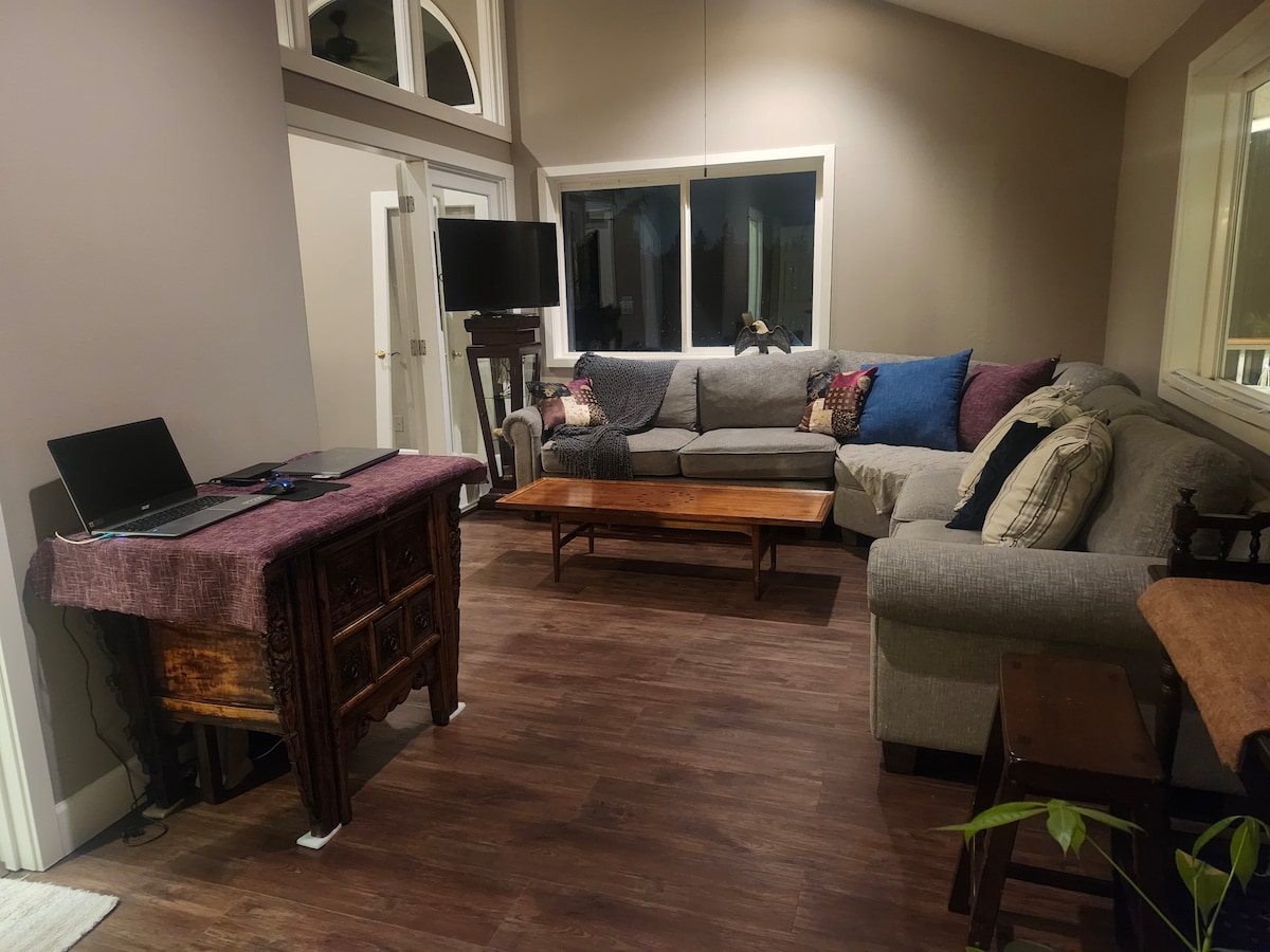 This cabin is the perfect getaway for your Mt. Baker adventures. Located just outside of Glacier, WA, it's a great last stop before heading out into the national forest. From the cabin, it's a short 15 minute walk through a forest path to town for your morning coffee, and only a 30 minute drive up to the Mt. Baker ski area. Sitting just inside a cul-de-sac in a gated community, you'll find find both nature and privacy during your stay.