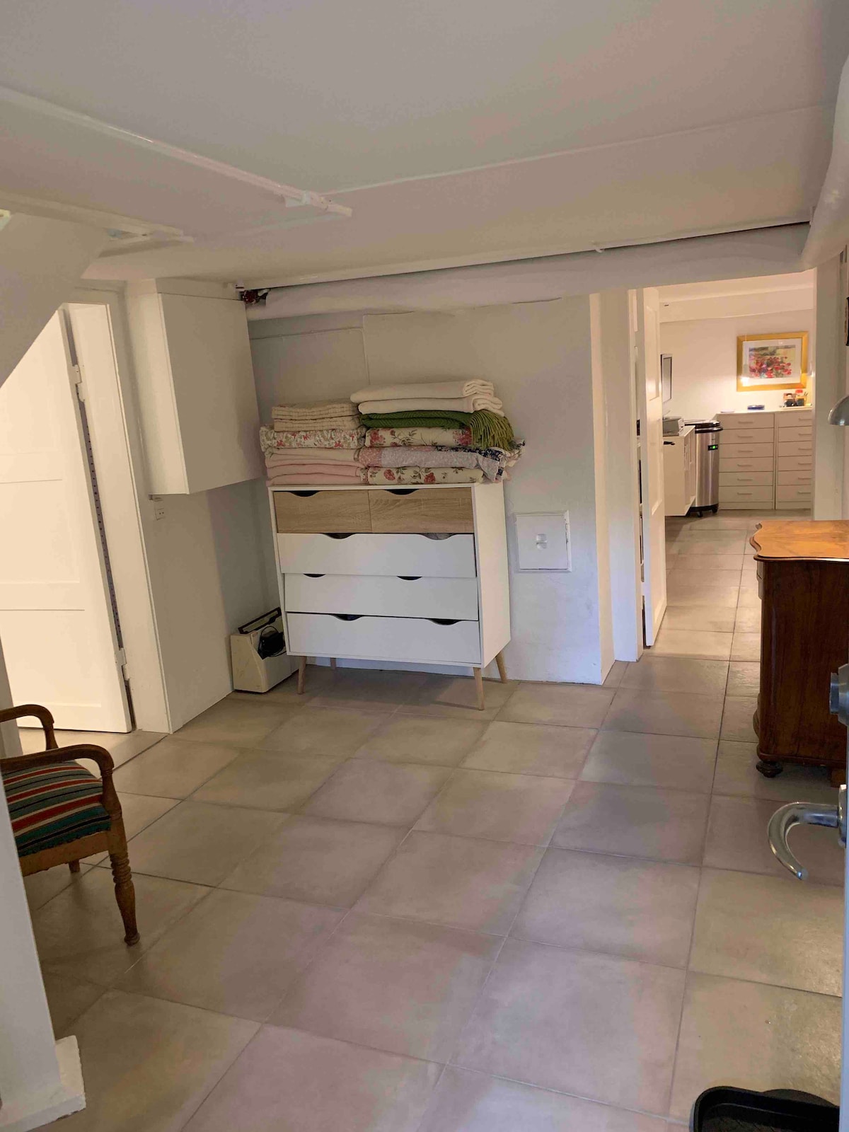 Kælderlejligheden tilgås ved egen indgang. Lejligheden er indrettet pænt og alt er moderniseret. Huset ligger 5 min. gang fra S-togstation og 15 min. kørsel fra København centrum. Der er skov og strand indenfor cykelafstand. Der er indkøbs og restaurant muligheder indenfor cykel og gå afstand. Vi gør opmærksom på at vi har en meget venlig hund som kan være i haven når vi er hjemme