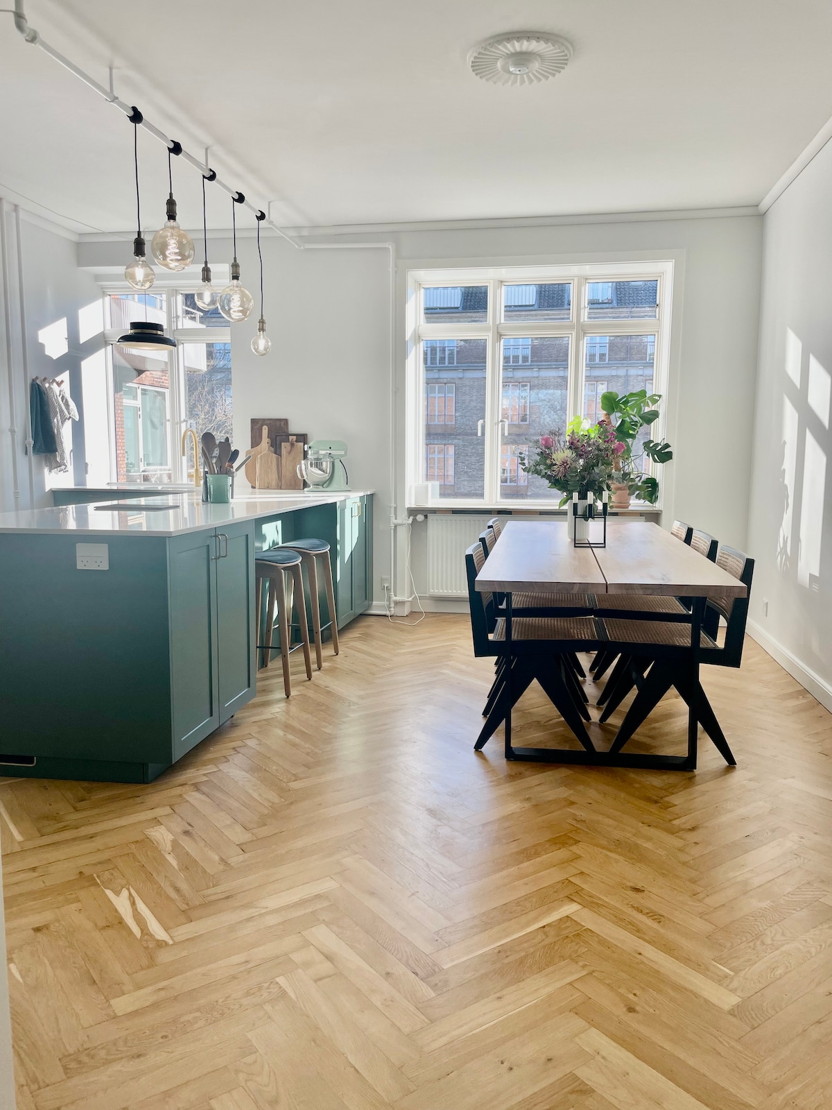 This elegant 128 m² apartment is set in a classic 1930s building and combines modern design with timeless details. It offers three comfortable bedrooms, a bright living room with high ceilings, a dining area, and a fully equipped kitchen. The bathroom is finished with quality materials and has a walk-in shower. With stylish interiors and plenty of natural light, the apartment is ideal for families or couples who want both comfort and space.