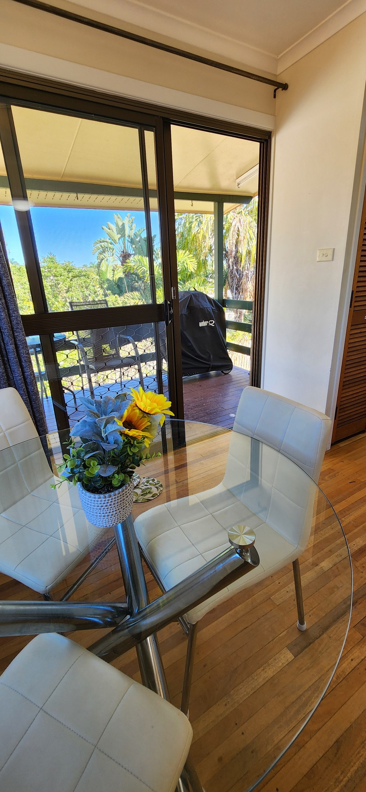 Guests will be close to everything when you stay at our centrally located home. This home is short walking distance to the shopping centre, great coffee venues, hotel, beaches, play grounds and surf club - there is something here for everyone! What more could you want? This really is a wonderful location for all your needs and enjoyment. Baby gates are installed for your little ones safety. The deck is where you can chill and relax taking in the beautiful view over the beaches!!