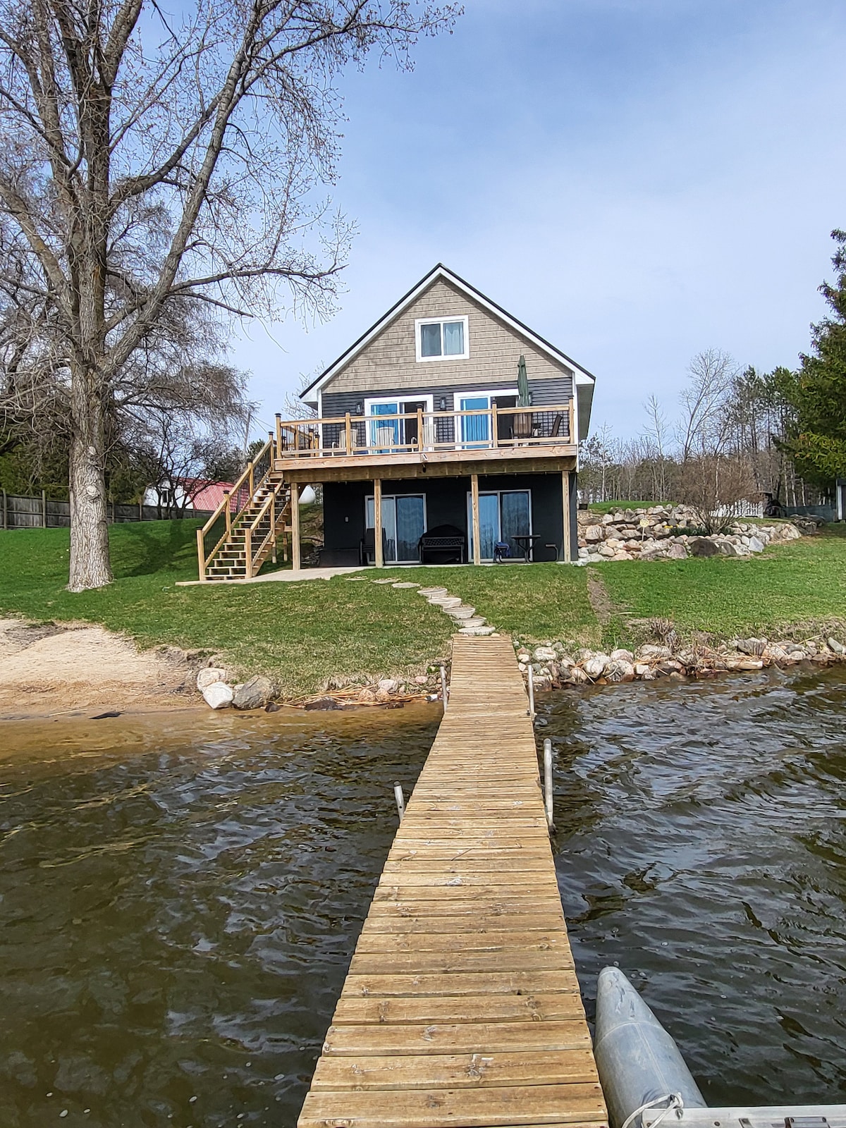Lakefront luxury, in your backyard! Sandy Feet Retreat is located just 2 hours from Metro Detroit. Summer or winter, this property is packed with amazing things to experience! The space has been professionally designed to be both functional and fun. With 5 bedrooms, 2 living rooms, plentiful outdoor seating, plus a huge indoor/outdoor game-cave, the home can accommodate up to 14 people. Our goal is to help you relax and unwind so you can make new life-long memories with your family and friends!