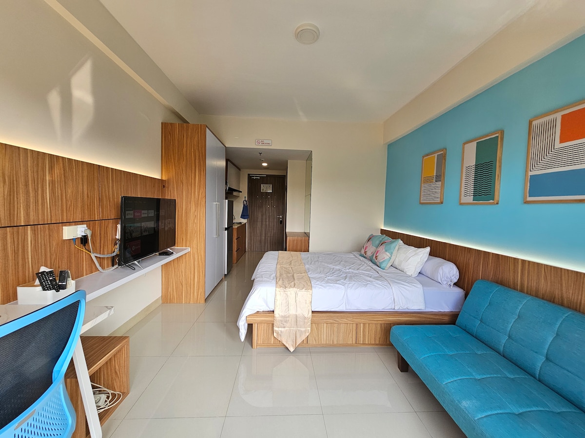 Immerse yourself in the vibrant heart of Bandung at this stylish studio on 10th floor of Parahyangan Residences. Enjoy modern amenities like a fully-equipped kitchen, high-speed Wi-Fi, and a 50" smart TV with Netflix. Indulge in resort facilities, contactless check-in, and nearby conveniences for a perfect staycation, holiday, or work-from-home experience. Now featuring a Reverse Osmosis drinking water, food waste disposal and new washing machine.