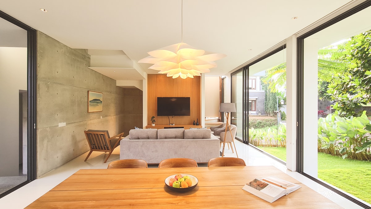 Experience luxury and tranquility at our mountain villa, crafted in late 2020 by an award-winning architect. Koselig Home blends Japanese and Scandinavian minimalist design for a serene and stylish retreat. Key Features: • 5 Spacious Bedrooms • 3 Stories • Courtyard, Balcony, Rooftop with BBQ • Fully Equipped Kitchen & Pantry • AC, Hot Water, Laundry, WiFi, Cable TV • Cool 1000m Elevation • 20-Minute Drive from Central Bandung Book your stay at Koselig for a luxurious mountain escape.