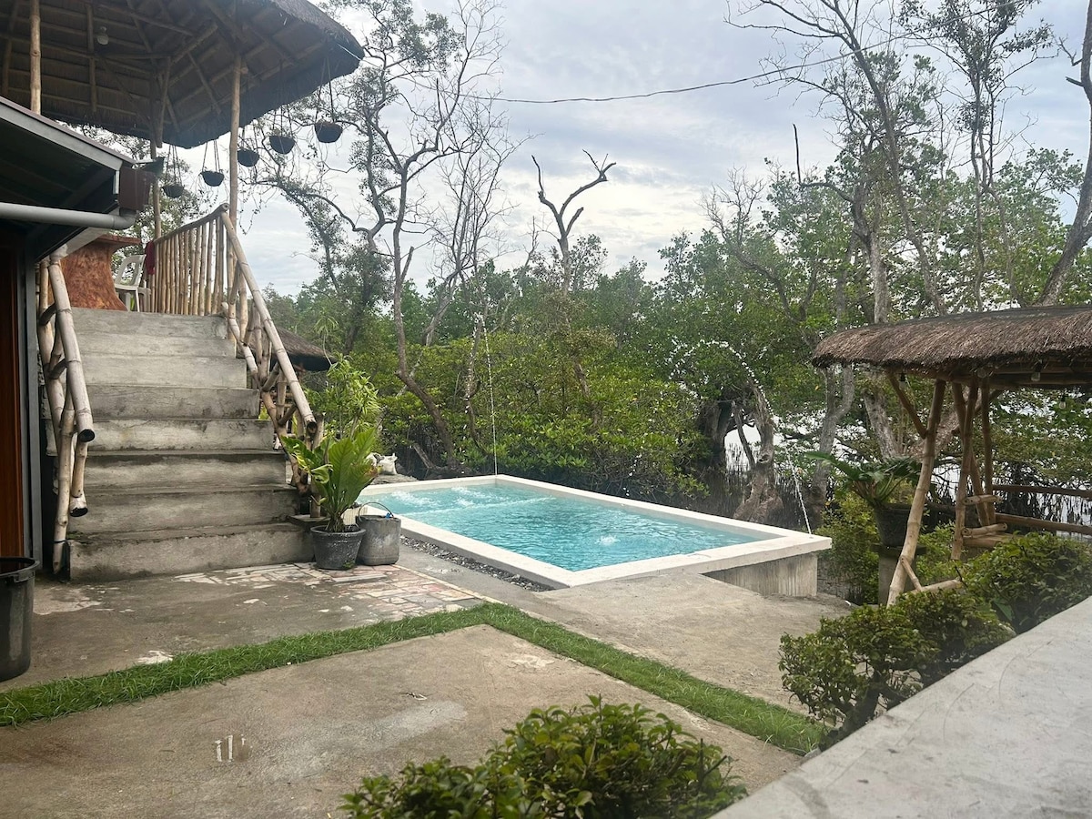 Bring the whole family to the eco-friendly bamboo hut surrounded by tropical greenery. Enjoy the refreshing breeze, peaceful atmosphere, and natural beauty. Perfect for a relaxing getaway, this simple retreat offers an authentic island experience is great place with lots of room for fun.