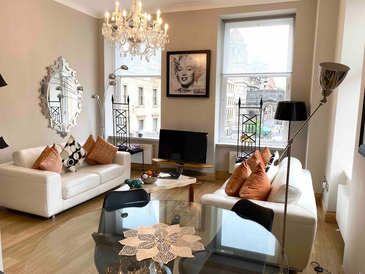 Situated in the popular Merchant City area of Glasgow City Centre, this spacious and stylish two-bedroom apartment offers the perfect base for exploring the city. The apartment benefits from a bright open-plan living space, fully equipped kitchen, and a dedicated parking space. Please note: The apartment is set within a residential building, so we kindly ask guests to be respectful of neighbours. No parties, smoking, or antisocial behaviour is allowed.