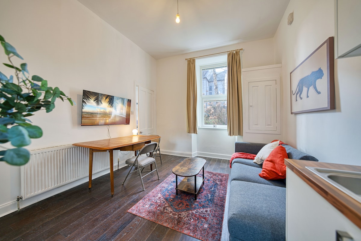 Welcome to The Skyline Suite — a stylish West End retreat offering sweeping skyline views from your own private balcony. Thoughtfully designed and comfortably furnished, this modern apartment is ideal for couples, small families, or friends seeking a well-located Glasgow base with a touch of luxury. The suite accommodates up to three guests and combines plush décor with practical amenities, making it equally suited to short city breaks, event stays, or longer visits.