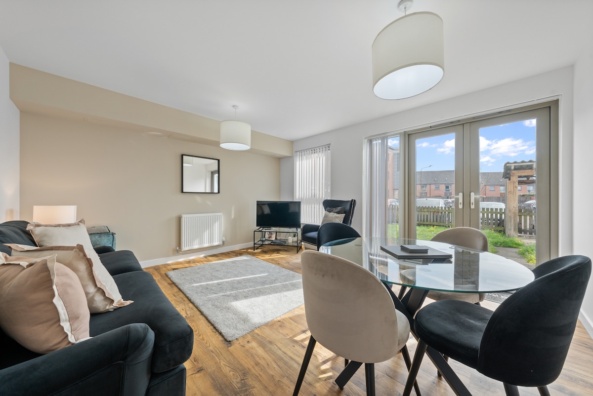 Keep it simple at this peaceful and centrally-located place. Tastefully decorated, comfortable and well equipped living and kitchen space with 2 bathrooms, 2 bedrooms, all accessed via secure and attractive outdoor courtyard. Step outside the courtyard into the trendy Merchant City, with amazing places to eat and meet up. 6 minute walk to central station, George Square and all transport interchanges. ( I can send a link to a short fly through of the flat if interested- email me for the link).
