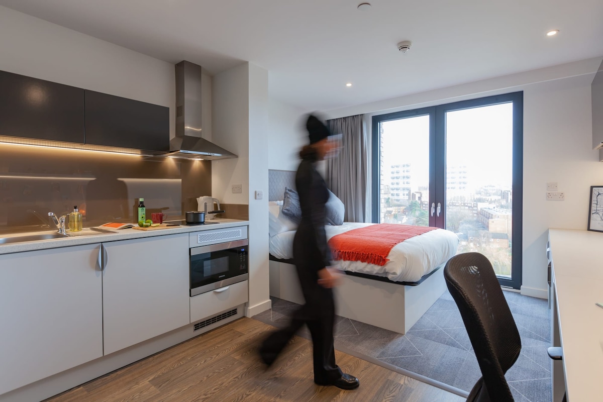 🌟 Experience the ultimate in student living with our modern studios, located in the vibrant heart of Glasgow. Our thoughtfully designed studios offer everything you need for a comfortable and productive stay, featuring a cosy small double bed, a self-contained kitchen, and a private bathroom. Each studio also includes a dedicated desk for your study needs, ensuring you have the perfect space to focus and excel.