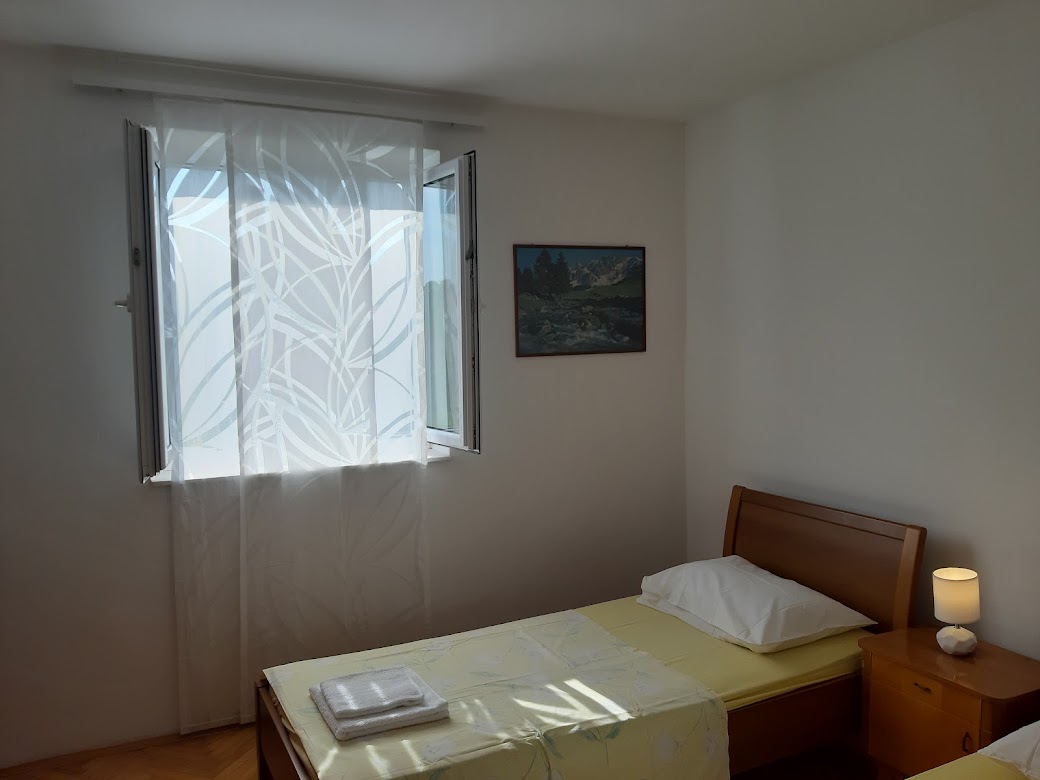 The lovely apartment for 2+2 persons on the third floor, 50 m2 , two separated rooms connected , there is the pass by the door from the first one to the second one. The first one with the queen size bed, the second one with the sofa bed in the living room , one bathroom, big kitchen well equipped with eating place, wash machine, dishes washer, sat tv, wifi, air conditioned, the large terrace with the magnificent view and facing the sea, free parking place.