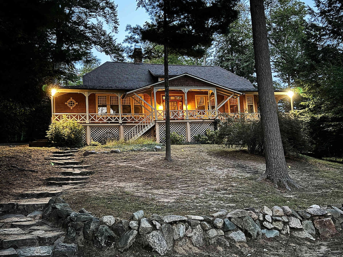 Enjoy the coziness of a bygone era while staying in this 1940s quaint, storybook log cabin. The Hawks Nest has been lovingly restored to its original glory while having all the modern-day amenities woven through its clean 380 sq. ft. space. Retreat to the spacious covered porch to relax and view the acre-and-half property leading down to 100ft of 6Mile Lake frontage. Star gaze while relaxing in the comfortable, Amish-built gilding chairs around the spacious, paver fire pit area .