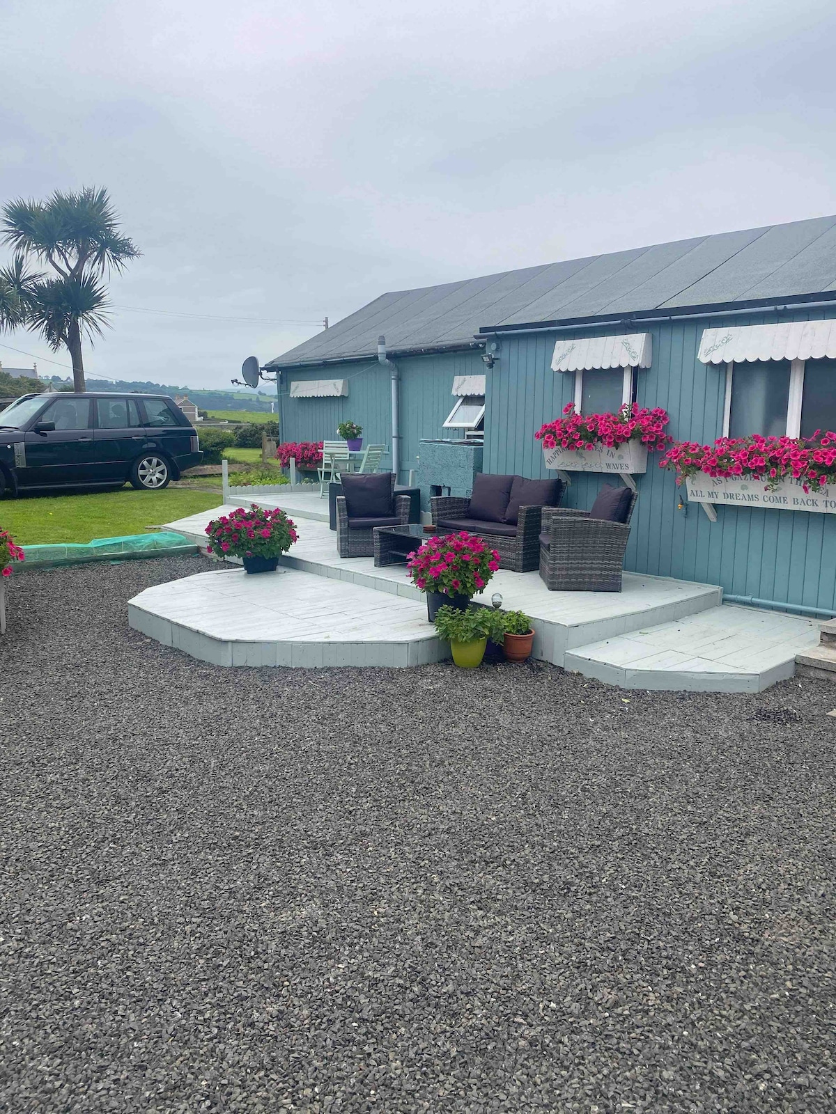 A perfect waterside getaway all year round for two. On the waters edge, giving commanding views out to sea, mountains and panoramic views. Only 5 mins drive from a large market town and 20 min to Belfast city. Dog friendly. Close to leading golf courses. Stylish. Vaulted ceilings, Large floor to ceiling windows, doors open out to large terrace south facing for sunset drinks or bbq and a balcony area from master suite. Outdoor seating for chilling or dining. Wood burning stove in living area.