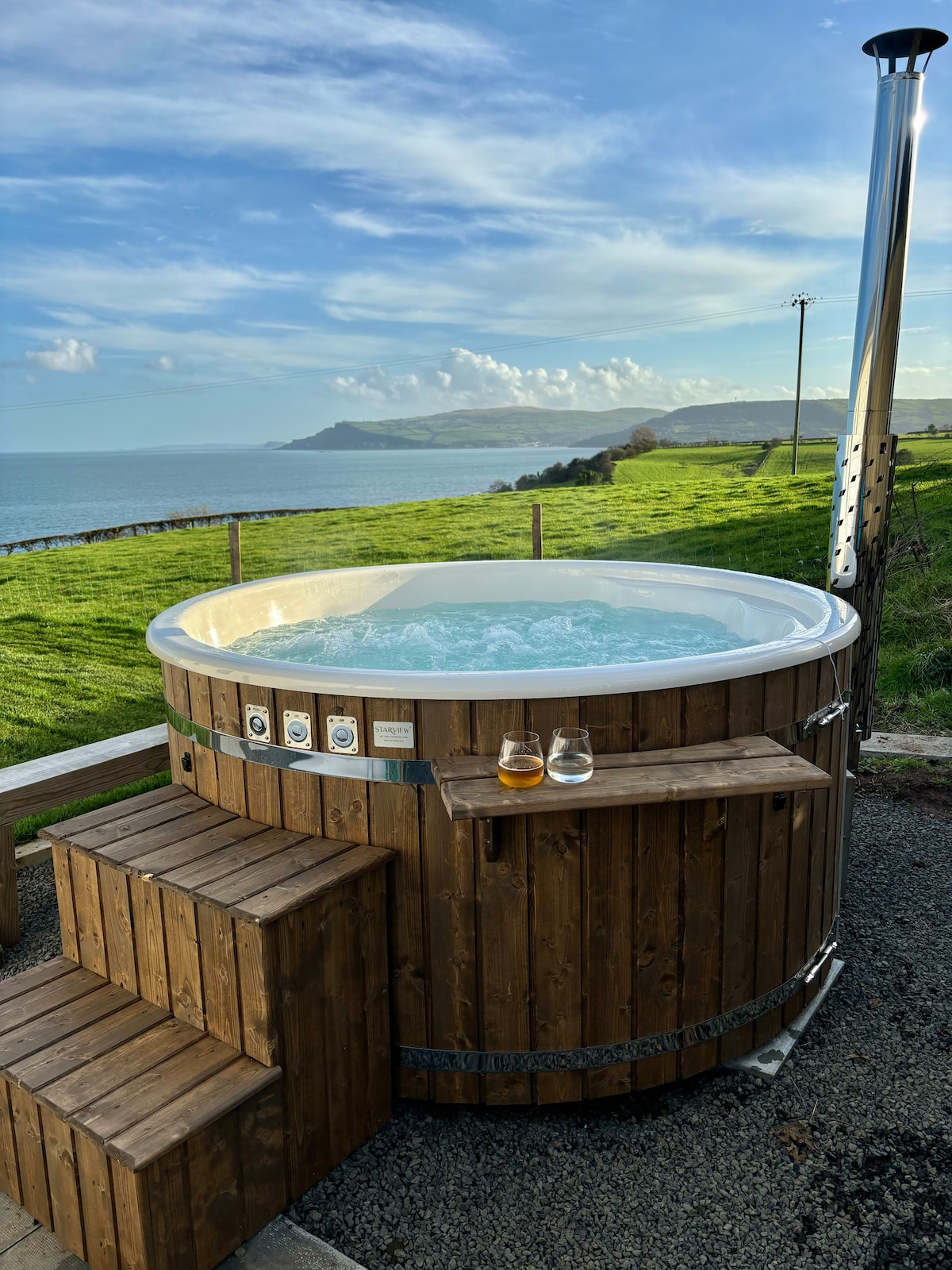 A unique luxury coastal getaway located on a family farm in the Glenarm countryside. Perfect for families, samll groups and couples. Ideal for a relaxing retreat or as a base to explore the world famous Causeway Coastal Route from the first of the Nine Glens of Antrim. Stunning views of the Irish Sea towards Scotland and the "Ailsa Craig" to the front and picturesque rolling hills to the back. NITB Four Star Grading
