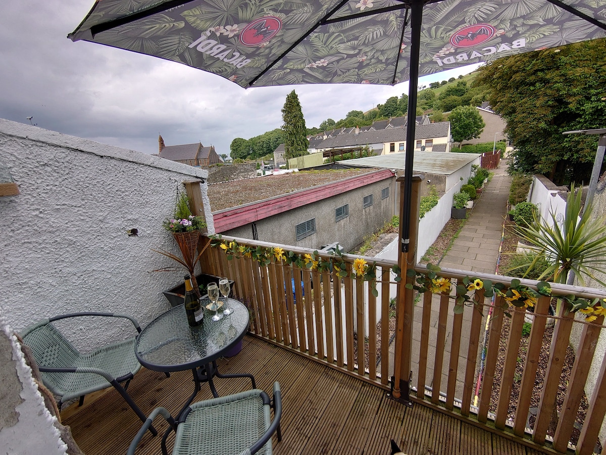 This house was built in the mid 19th century. A hallway leads to a modern kitchen /dining room.This in turn brings you to a quiet sunroom with private courtyard with seating and flowers.Upstairs three bright bedrooms with two double and two single beds. Nestled in the heart of the village it is near blue flag sandy beach and a few short steps to a lovely harbour Also walking distance to the selection of great restaurants and pubs nearby. Northern Ireland Tourist Board approved