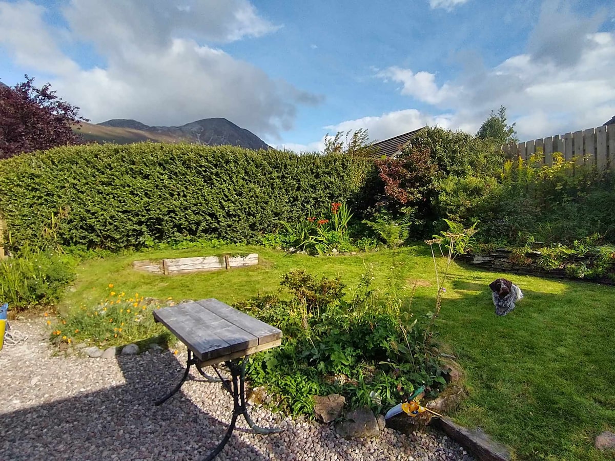 Relax with the whole family right in the heart of Glencoe Village. Surrounded by mountains, rivers and the sea loch, you can immerse yourself in the gorgeous highland nature. Secluded and safe garden for you (and your pets and children), you can enjoy mountain views with a fire pit or a BBQ or just enjoy swinging in one of our hammock chairs sheltered from any rain. Modernised interior inside a traditional Scottish Cottage. A fireplace for cosy nights, and places to eat and drink a walk away.